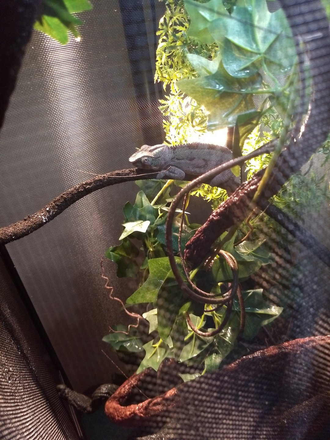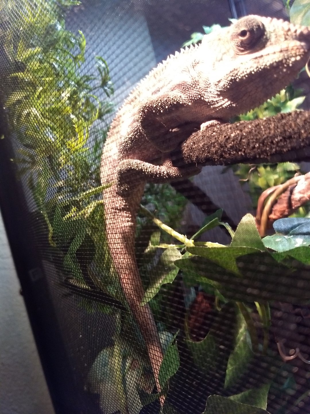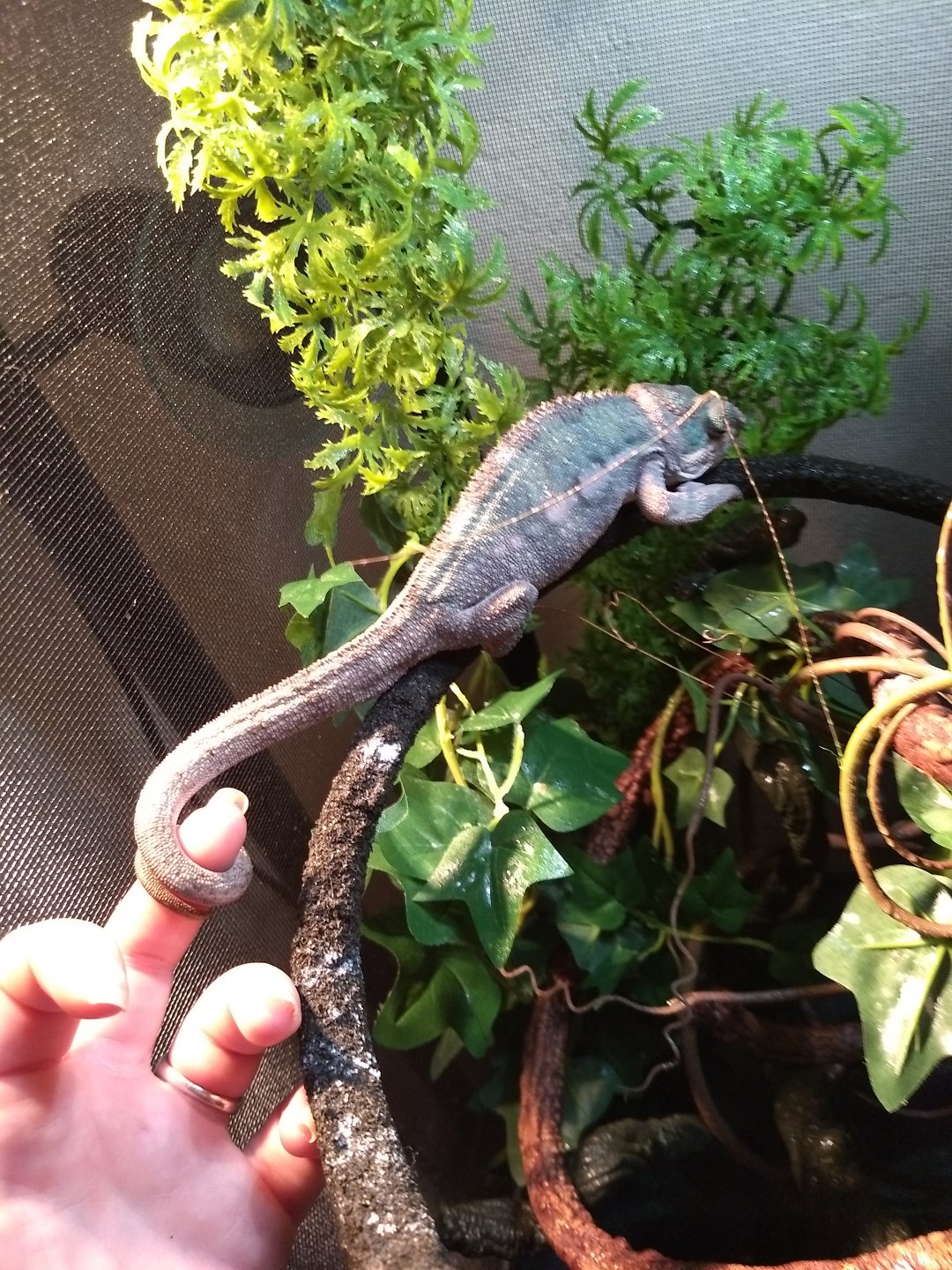 - Your Chameleon - panther chammie, I'm pretty sure he's male, he pooped and had that red butt tube that went back in. I think he's older. He's pretty big.