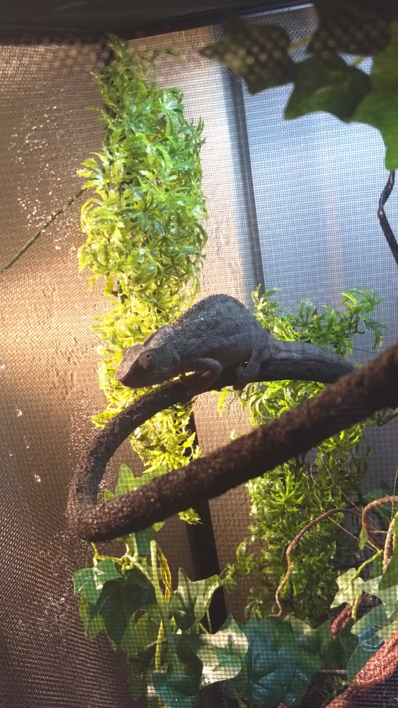 - Watering - he has a drip that stays on a bundle of leaves in the corner to keep those wet overnight, my boyfriend and I mist about 4 times a day. Maybe more. Basically when we see the cage about dry we saturate it with a mister. He's home all day so he's really taken good care of Phillip.