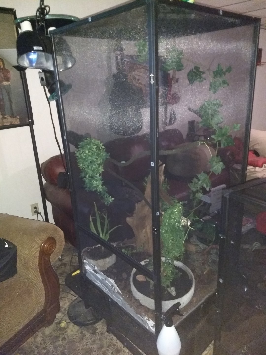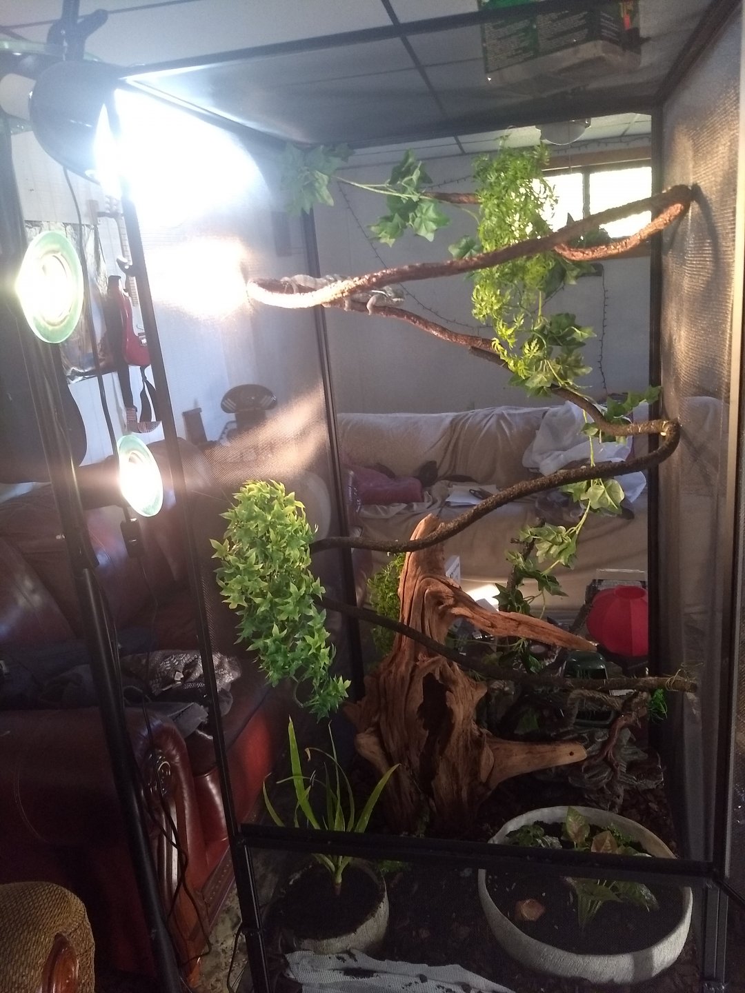 Yeah I will. This weekend I'm going to the craft store to get some thin floral wire to make a better habitat. Payday I'm going to get a bigger cage. Customcages is only acrylic so I don't want to get that. Him and the snake are being moved to the back room. It's an addition to the house that's the length of it so it stays a bit warmer back there.