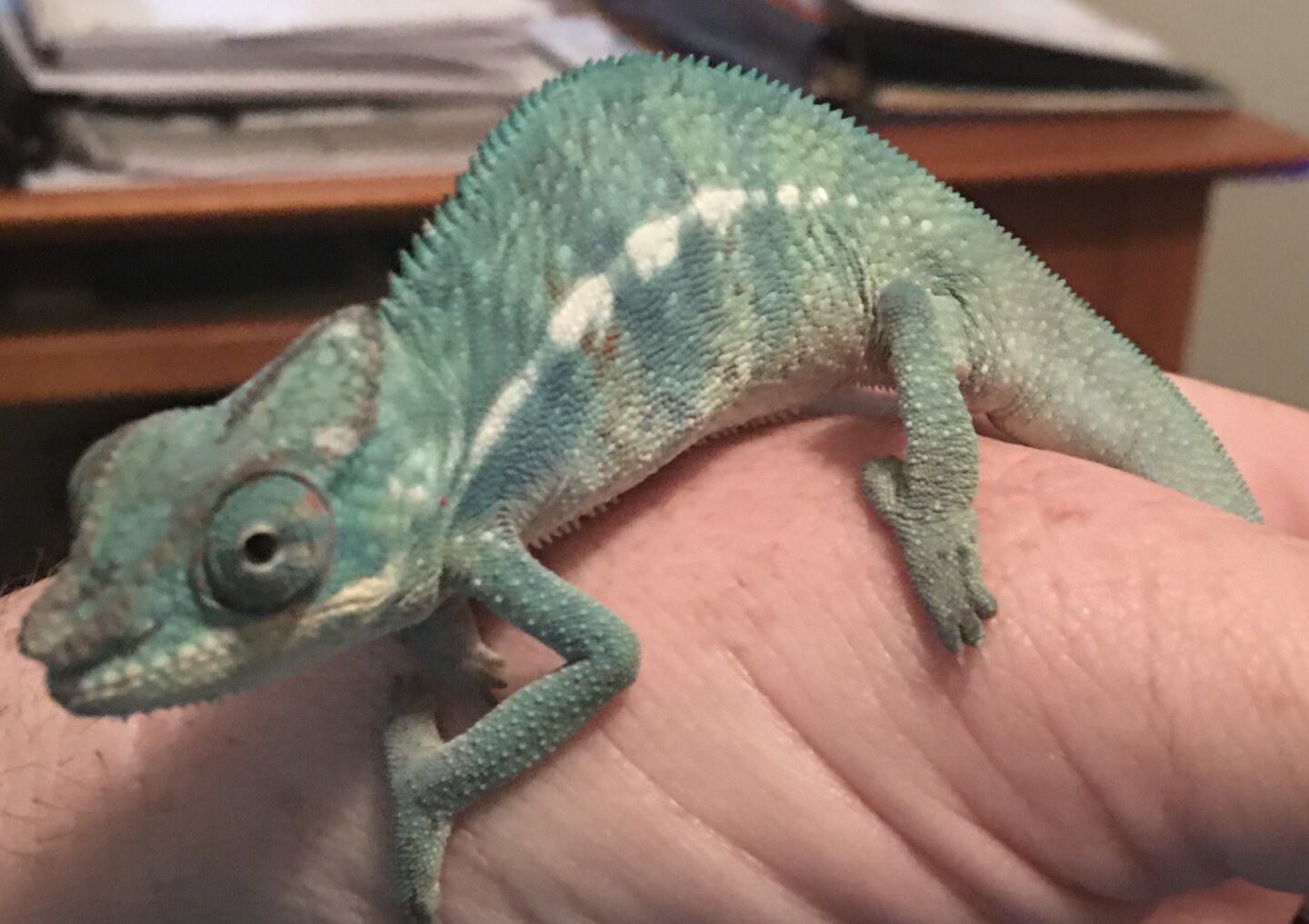 - Your Chameleon - Panther ( Pascal ) When I got him for Christmas he was 2-3 months old. My buddy said he got him when he was a little over a month old.