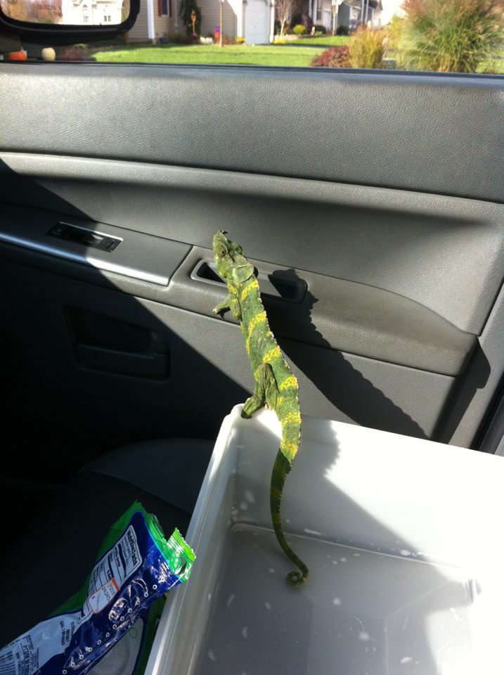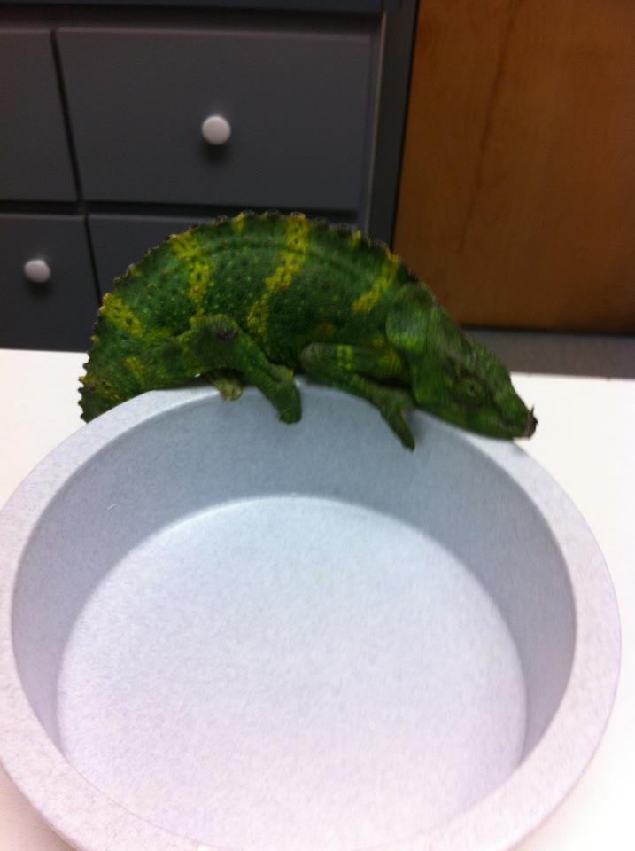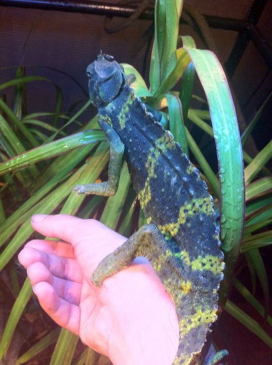 I'm excited, although I really need to pick up some gloves! His attitude towards food and the world is fantastic. Actually, he is a bit eager. Anytime I spray him, he is always drinking. Today? He actually shot his tongue at me WHILE drinking. Gotta say, was kinda surprised by it lol.