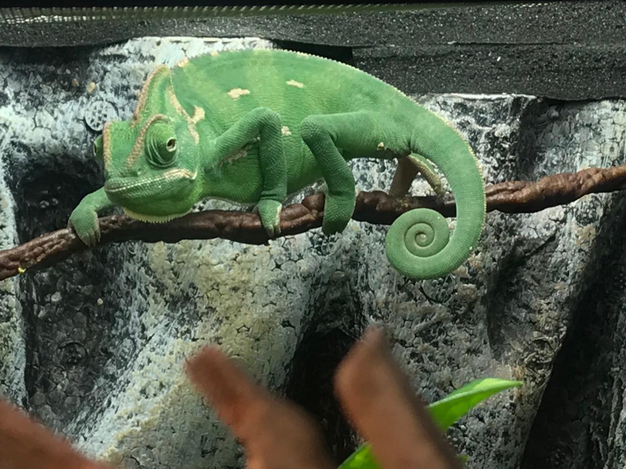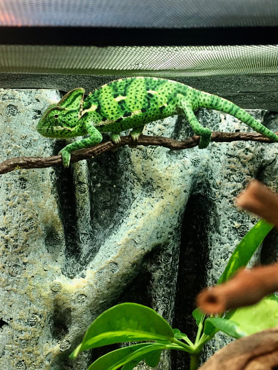 I finally got me a Veiled Chameleon at the end of March. My son named him Scales. Like everyone here I assume, I have always wanted a veiled and a panther. Was in one of the big box stores and picked one up. He was on sale for $60. Went home with him and 12"x12"x18" terrarium. From my research and cramming about chameleon husbandry I found out the small terrarium wasn't gonna hold him long. I figured he may have been 60 days old when I got him. Within a month I purchased a 18"x18x36" Exo Terra terrarium. It is the largest I could get locally but after today I filled it with possibly to many live plants and wished I would have gotten a larger one. This should work for while.