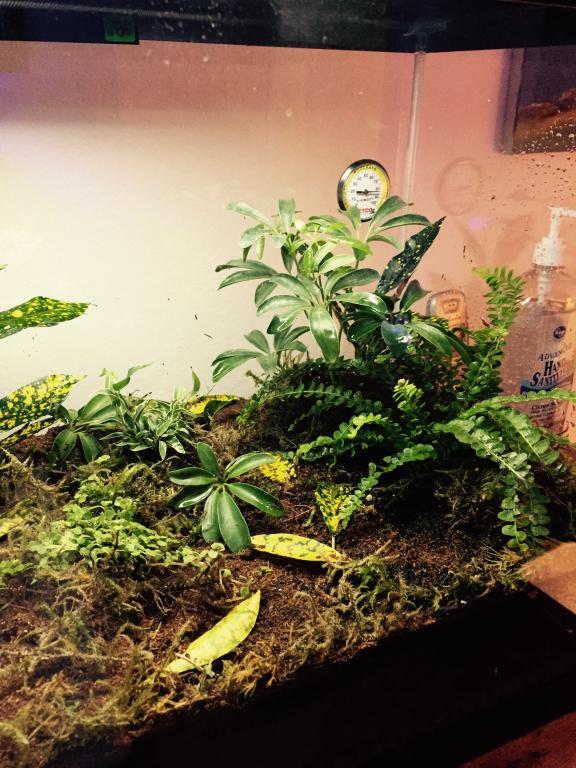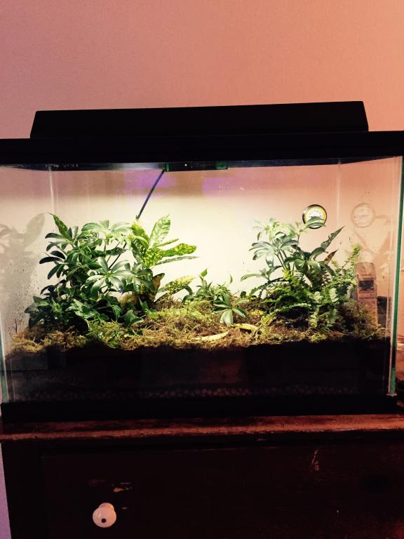 Hey everyone, I have been doing research and studying others set ups. I finally went out and purchased a 20 gallon tall glass terrarium. I also purchased "hydro balls" or clay fired balls for my bottom layer of substrate, I also purchased some weed blocker that I will cut and use to keep the substrates from mixing. I will be using Eco-earth along with some natural moss. Should I add in sand and natural soil? I picked up a few small dwarf umbrella trees, a nice ivy, and a fern. I will be looking for a spotted croton, baby tears, and a few others. I was planning on setting my substate up, bottom layer hydro balls, then weed screen, then mix of moss and coco fiber, with dirt and sand maybe? I heard the sand is supposed to make the dirt more easy for live plant roots.