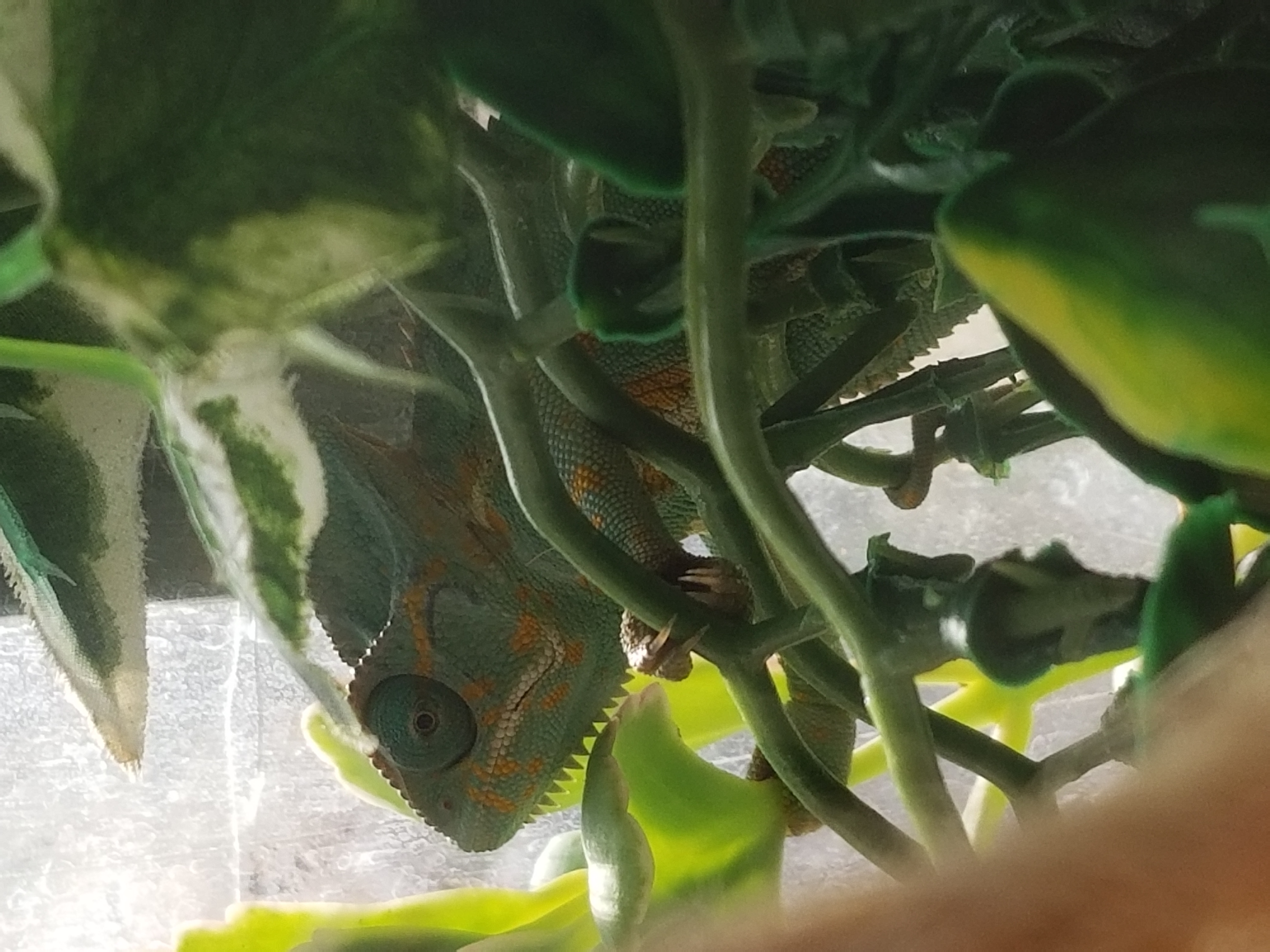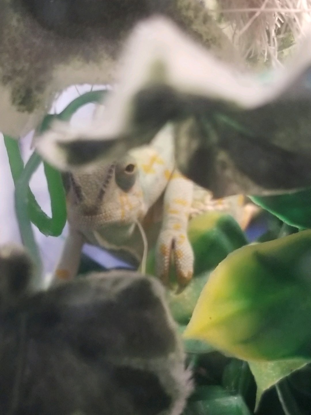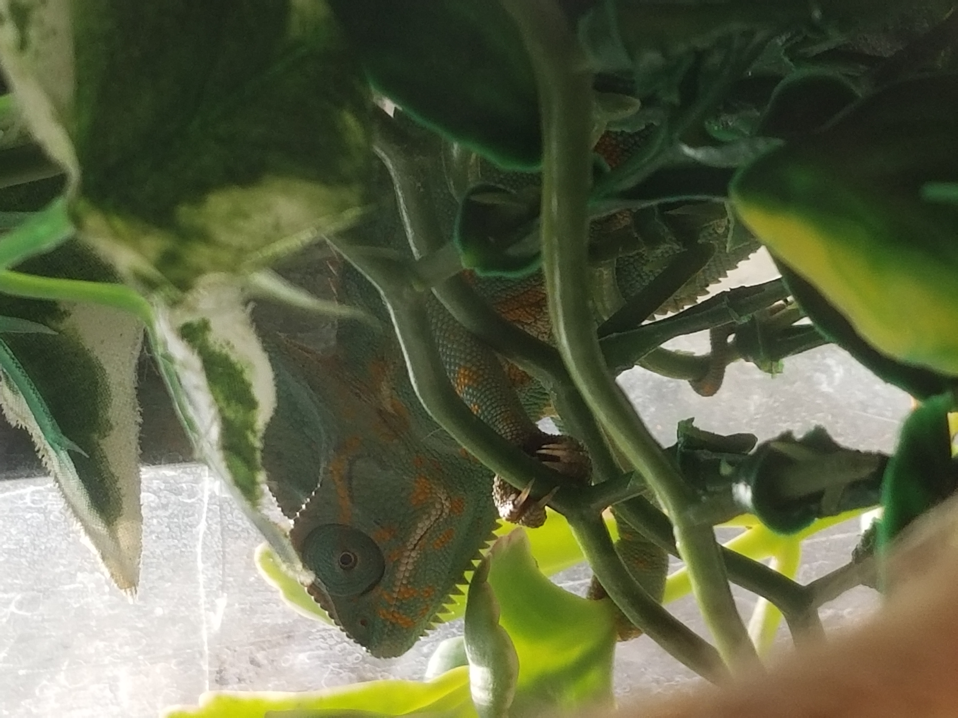 She's currently not showing much interest in food but that seems to be because she'd preggers. She also has a heating pad and a regular light bulb that seems to be keeping her quite warm. She has three live plants in her tank as well. Again, I'm completely new to Veils and Chameleons (especially females) in general. Any advice would be greatly appreciated.