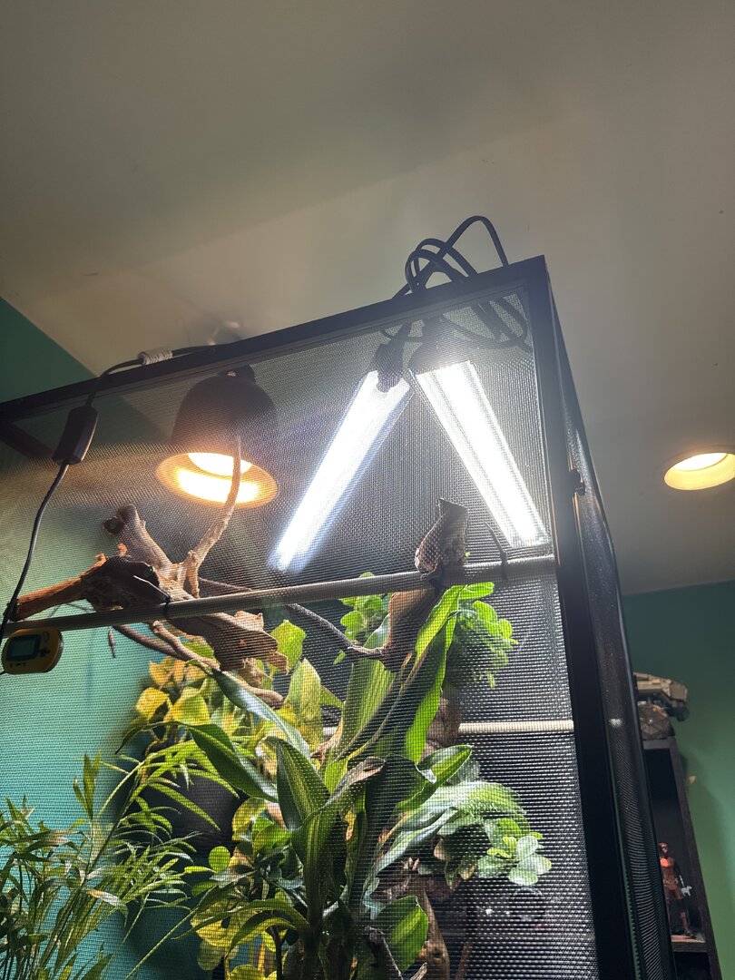 Just one other observation / tip : if possible, I personally would add more "greenery" or usable shade up near the cage top. Say in the top back corners. True, Rango can go lower in the cage to get away from the UVB if he wants to... But as a rule, Chams prefer to stay in the top 1/3 of the cage. So they all really appreciate having shade and foliage up at the tip top of the cage as well so they can get out of the "sun" if they want to. Cheers, Todd