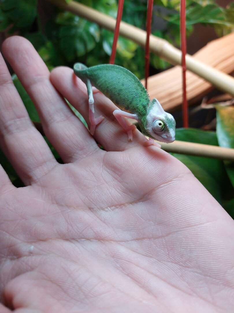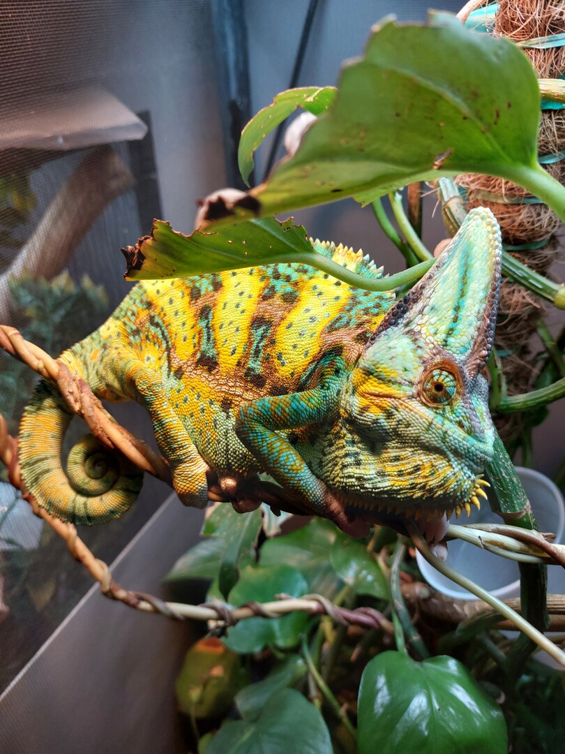 Today got my new male veiled from lllreptile. Doing really well eat few crickets with cup feeding. Licked some drips an been all over cage.