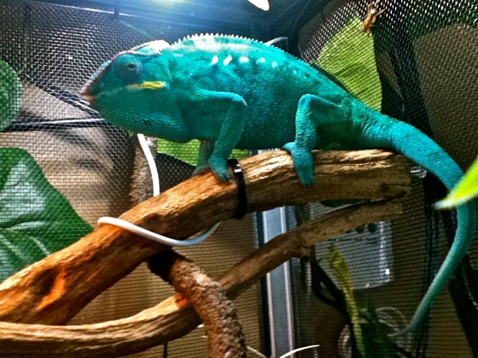 carol5208 Chameleon Enthusiast Apr 13, 2012 #6 Definitely true blue! Very beautiful coloring and he looks to be enjoying his new enclosure!