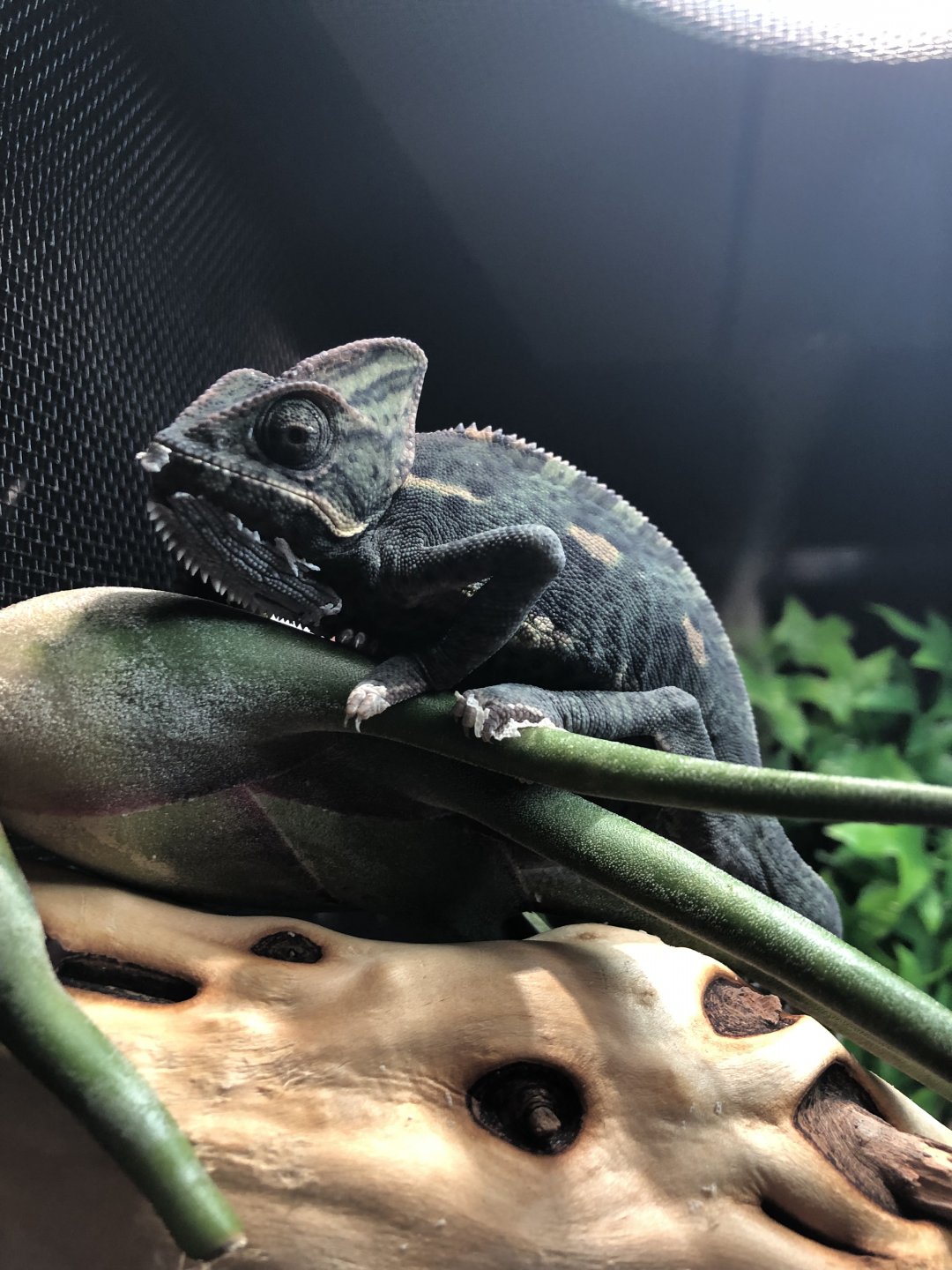 I am currently using the lighting that came with the reptibreeze kit, and they are keeping the basking spot at about 80 degrees. When Cham is basking, she is pretty dark and doesn't turn light green until night time, is this normal?