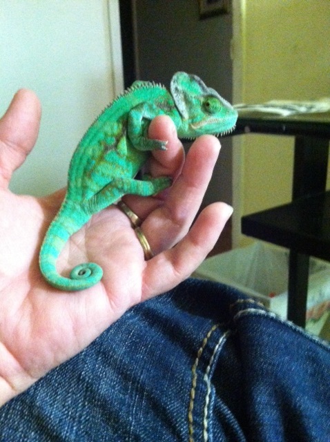 On May 09, 2014 we adopted a veiled chameleon. We purchased him from Pet smart along with the whole set up. His name is Chevy and he was a gift for our daughter who was after us for months for a Chameleon and I was adamant on not getting one because I hated anything that resembled a lizard. Once we brought him home, I immediately got attached, and low and behold, I think I may have stolen my daughters Chameleon.