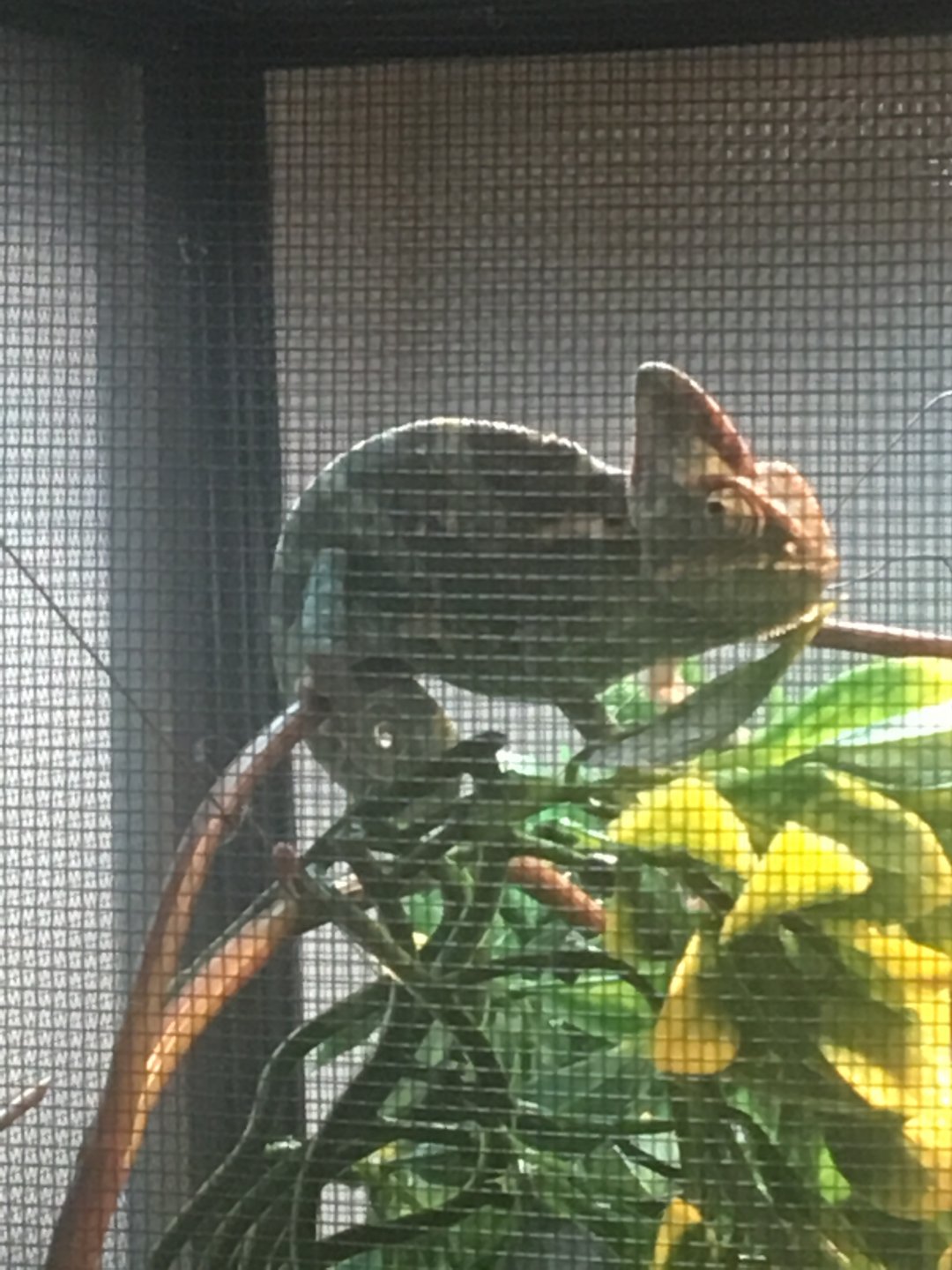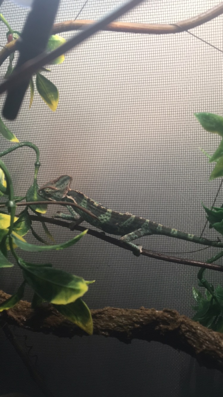 • Your Chameleon - Male Veiled Chameleon approximately 5 months. (I'm estimating on his size, but I really don't know. Any thoughts?)