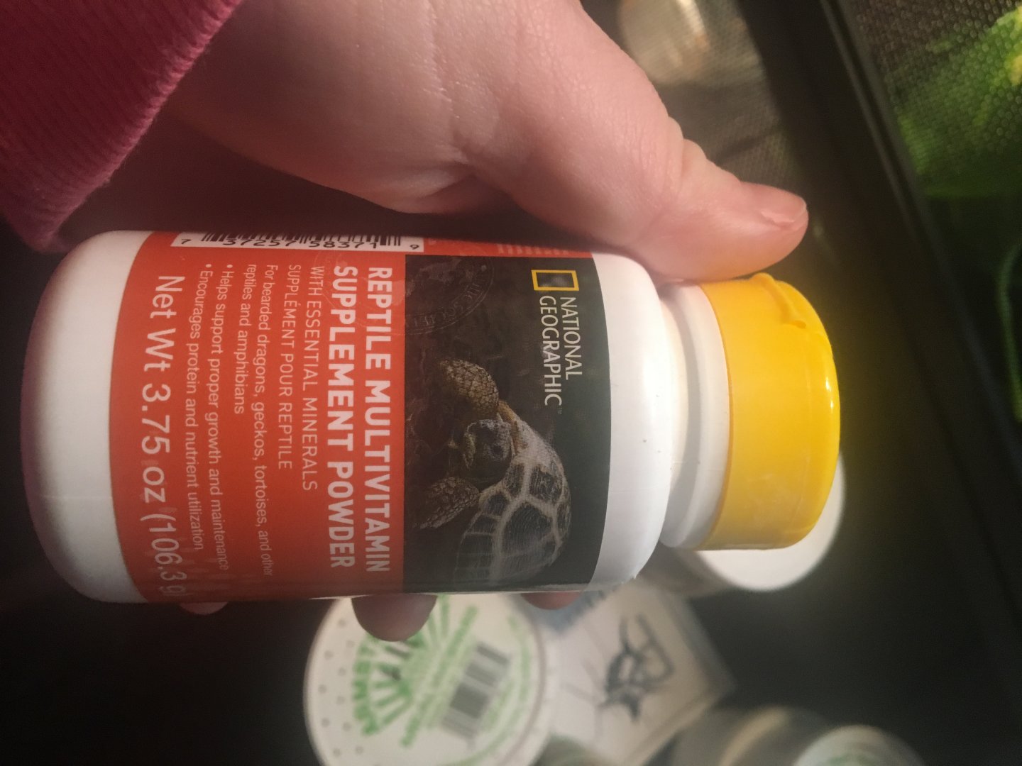 • Supplements - I have been giving him ReptiCalcium without D3 every other day with the morning mealworms. He gets a National Geographic Brand Reptile Multivitamin and ReptiCalcium with D3 every other week.