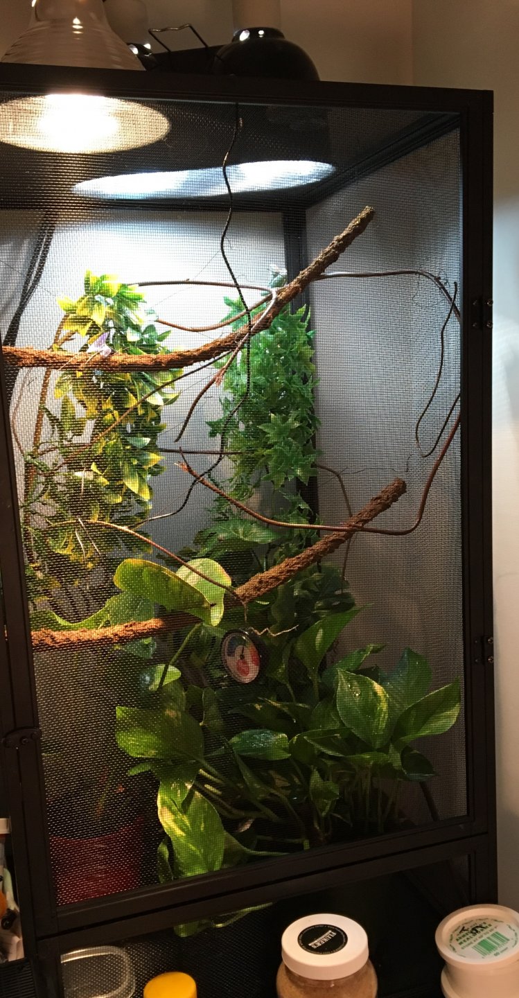 Thanks for the help! I just added some sweet potatoes, pineapple, and collard greens to the crickets. I will check my local store and get the other food ordered tomorrow. I have a linear UVB light that I used for corals in my saltwater tank, would something like that work?