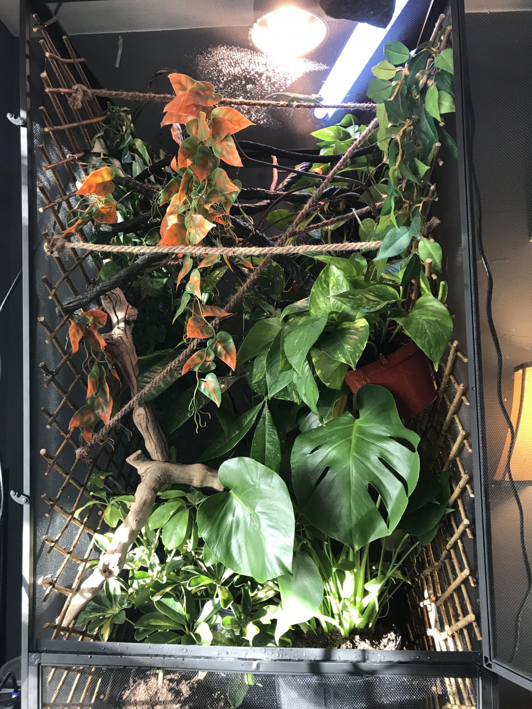 • Plants - I have two pothos plants and four fake hanging plants. The pothos plants are not very big yet, so I got some fake ones to fill the enclosure until they get bigger. I got organic plants and washed them for about 20 minutes, and replaced the soil with organic fine-grade soil.