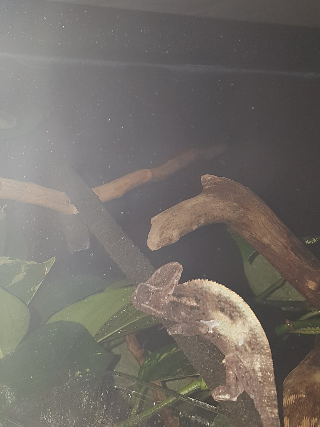 I purchased this vailed chameleon from a local pet store. I shouldn’t have but I let me heart over run my logic. Im almost 100% sure he is dehydrated and maybe malnourished too. We took him home and put him in his cage and then did a 10-minute misting session. He drank like there is no tomorrow and then pooped/peed orange with a sperm plug. He didn’t want to eat though. We have a cup with food and I’ve tried putting some on the leaves around him and with tongs, he just doesn’t seem interested at all. He seems a little listless and isn’t moving around – just sits in the basking spot and doesn’t move…. Plan to take him to the vet tomorrow if they can get him in. Is there anything else that I can do? Advise?