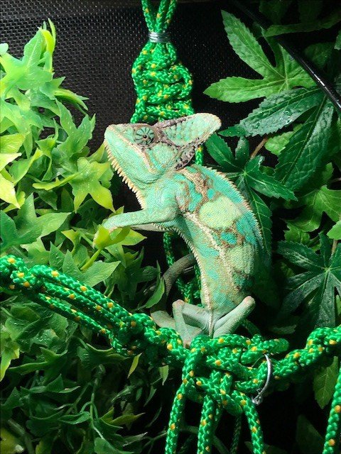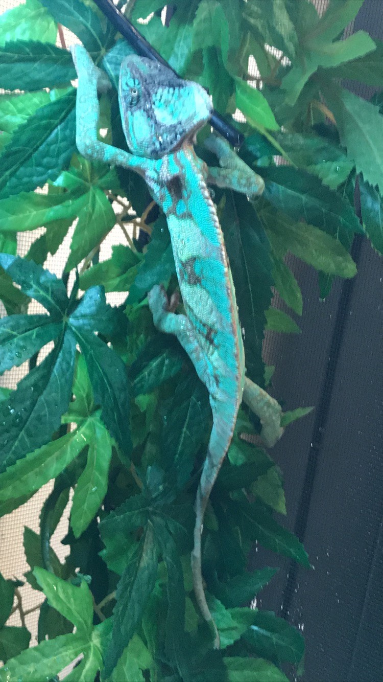 I acquired my 2 year old veiled male in June 2018. I named him Spyro (like Spyro the Dragon).