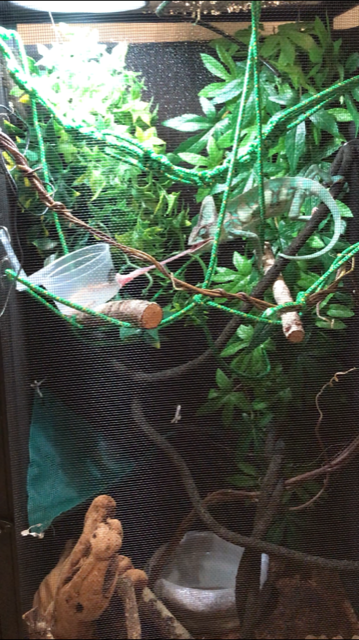 I had told a friend of mine that I was looking into getting geckos. Having a freshwater aquarium (serpae and black skirt tetras) and crabitat (hermit crabs), I was excited to get into the world of reptiles as well. My friend told me she knew someone who was looking to rehome their chameleon. I said, sign me up - I'm close with a couple who has a chameleon, so I'll have help!