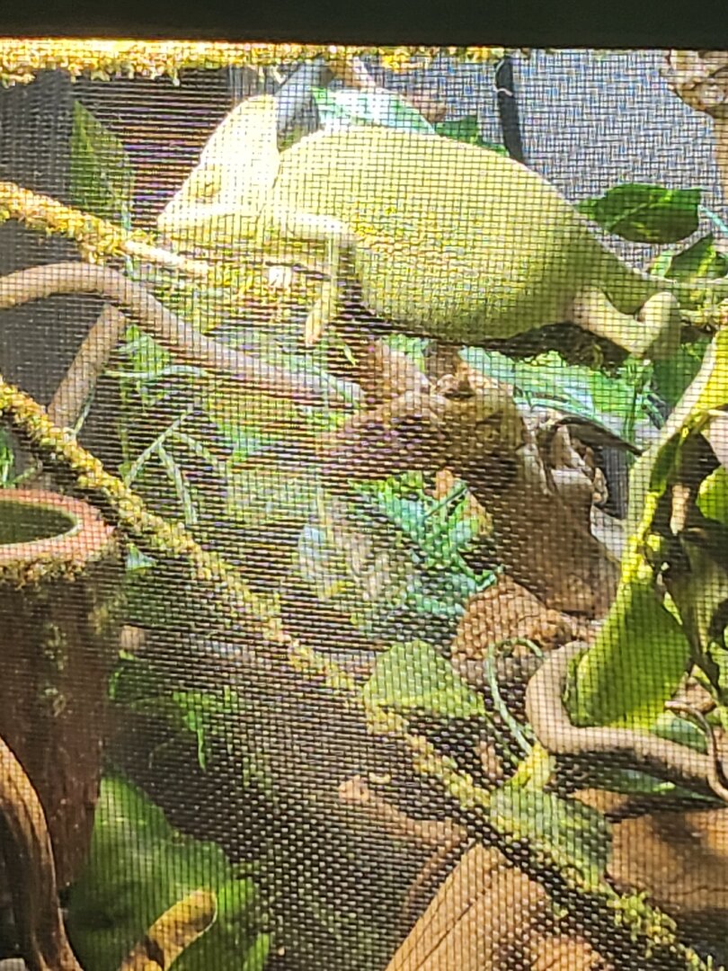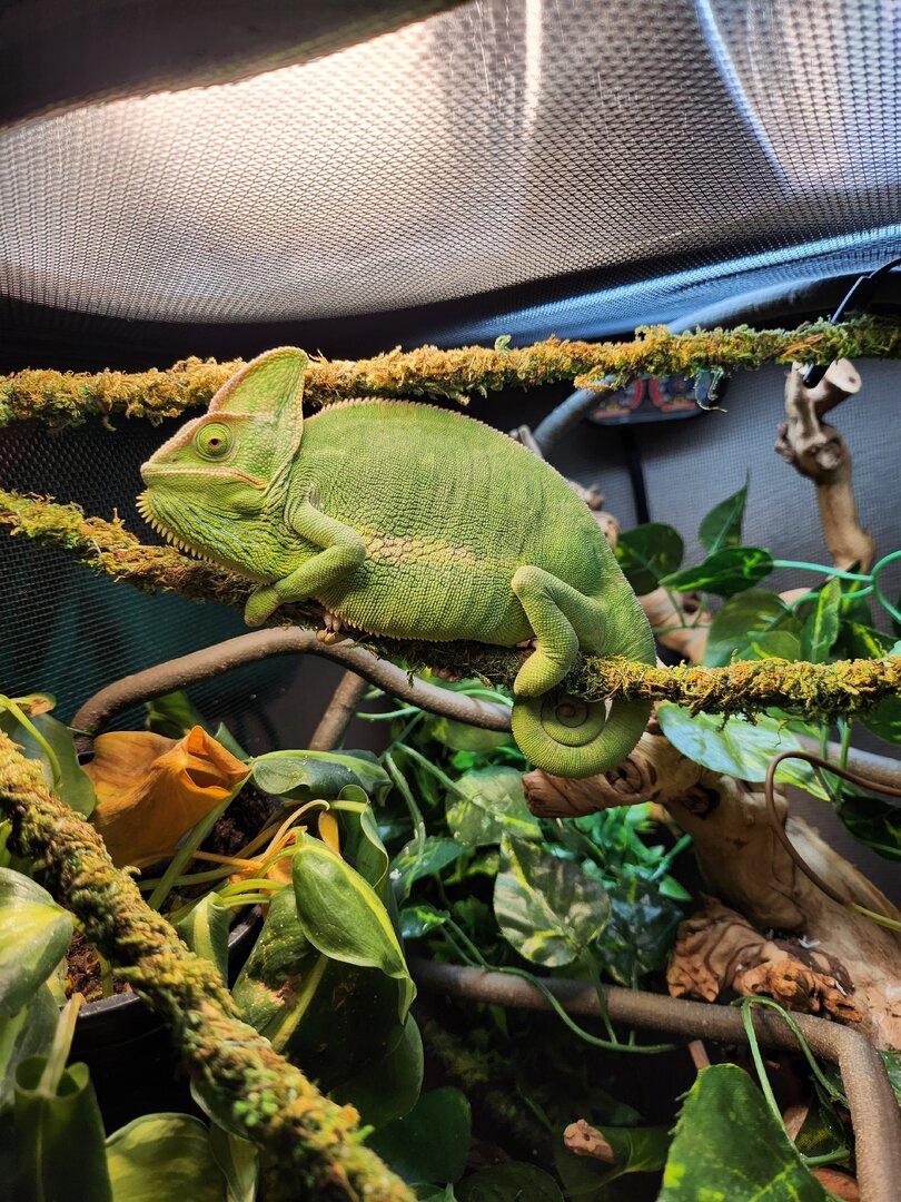 Hi there! I have a veiled chameleon (Freya) that I have had since October. She is roughly 10-11 months old. Up until about a week ago, she was the sweetest little thing ever! She came out to me daily (always on her terms, never forced), she ate every single bug from my hand. She was so chill. All of a sudden, she hisses at me, changes dark green and spotty when she sees me, hides, hisses, bites. She's also looking a little chunky! I'm wondering if the personality change and the reduced eating could be because she's about to lay eggs. I have a laying bin in there for her and I plan on making it bigger for her. Right now it's about 10inches deep and is a 50/50 of sand and organic soil. The main issue is....she uses it as a litter box. I don't want her to become egg bound, so I'm a little worried. I can't find where anyone else has this issue. Will she still dig and lay eggs if it smells like pee and poo in her bin? It can be as deep as she wants it to be or in as big a container as she wants, I just don't want her to use it as a potty. Is this normal? Please help!