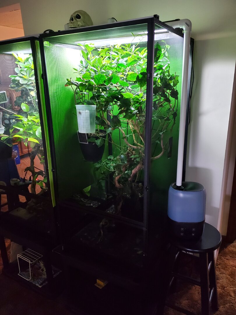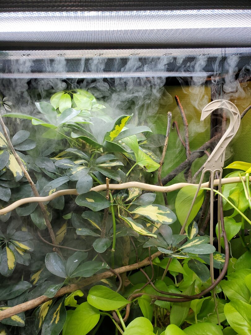 I’m struggling to keep humidity up at night, it hasn’t rained for maybe 2 weeks here and at night the humidity inside my enclosure is between 50-60 overnight. I must for 8 minutes before lights off, is it worth misting overnight too? Or buying a fogger?