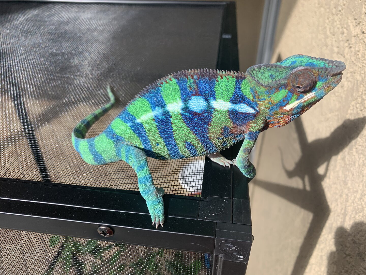 He is absolutely beautiful!! Those blues and greens are insane!!I can back Kammerflage 100%... Ordered a chameleon from them 14 years ago and then again this year. Theres a reason they've been in business for so long. Both arrived in great health and never had any issues with them. They've been great and have always responded to me in a timely manner. Here's my guy this time around hatched mid June so about five and a half months old (not showing some of his yellows he has either).