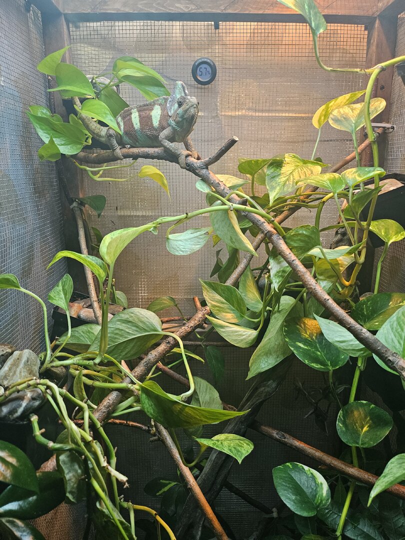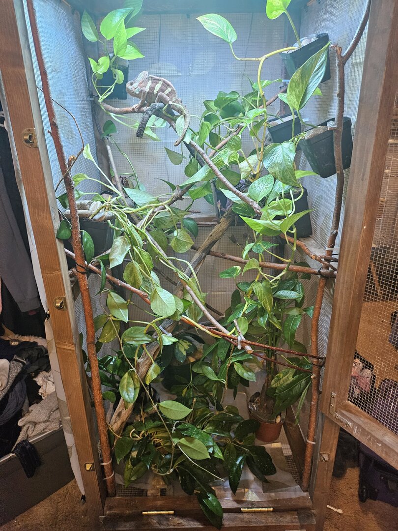 i use live plants. We have 3 varieties of pothos (neon, golden, marble queen), a hoya, an umbrella tree (small), a money tree (medium sized), pink princess philodendron (as said was safe on the chameleon academy's website), a tradescantia.