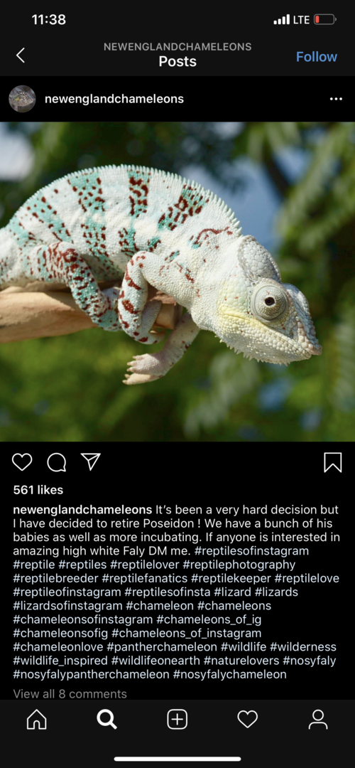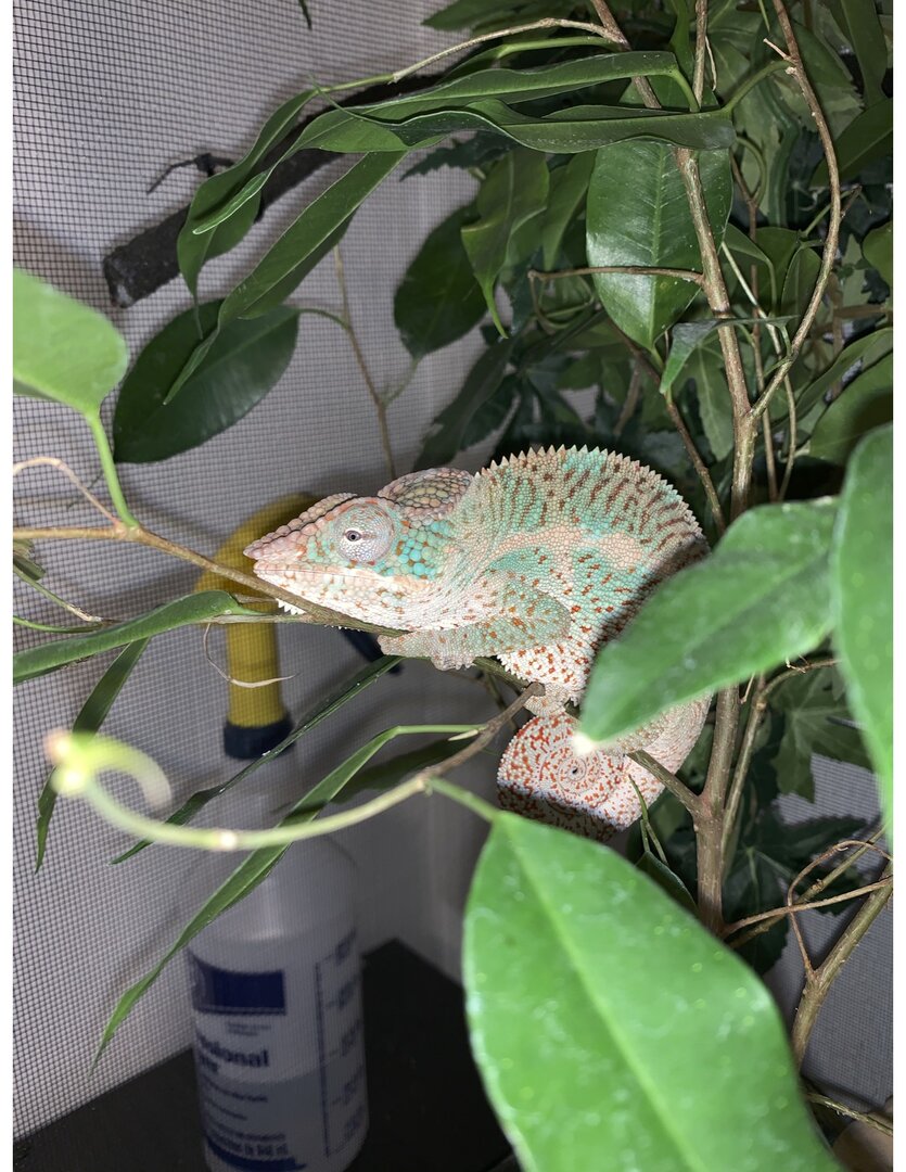 Nosy Faly panther chameleon comes from a high white/ high red rain line. He is from New England Chameleons his sire is Poseidon. Eats and drinks perfectly well. He is a bit aggressive when it comes to handling which is the reason Im rehoming him I don't have the time to work with him as I would like too. Couldn't really get a pic of him with his colors flared up but he is going to be a very beautiful Faly, for the cage and lights with the chameleon I'm asking $500 OBO or just the Cham $400 No lowballs please. Local Pick up Or can Meet if Close by located in Los Angeles 323-767-3840 Joey