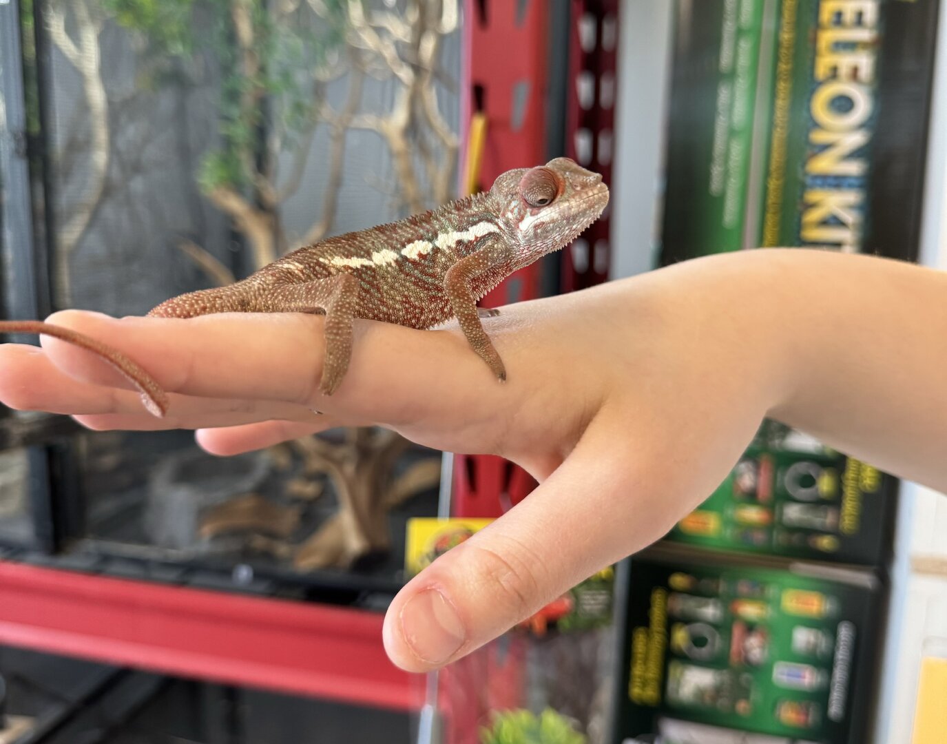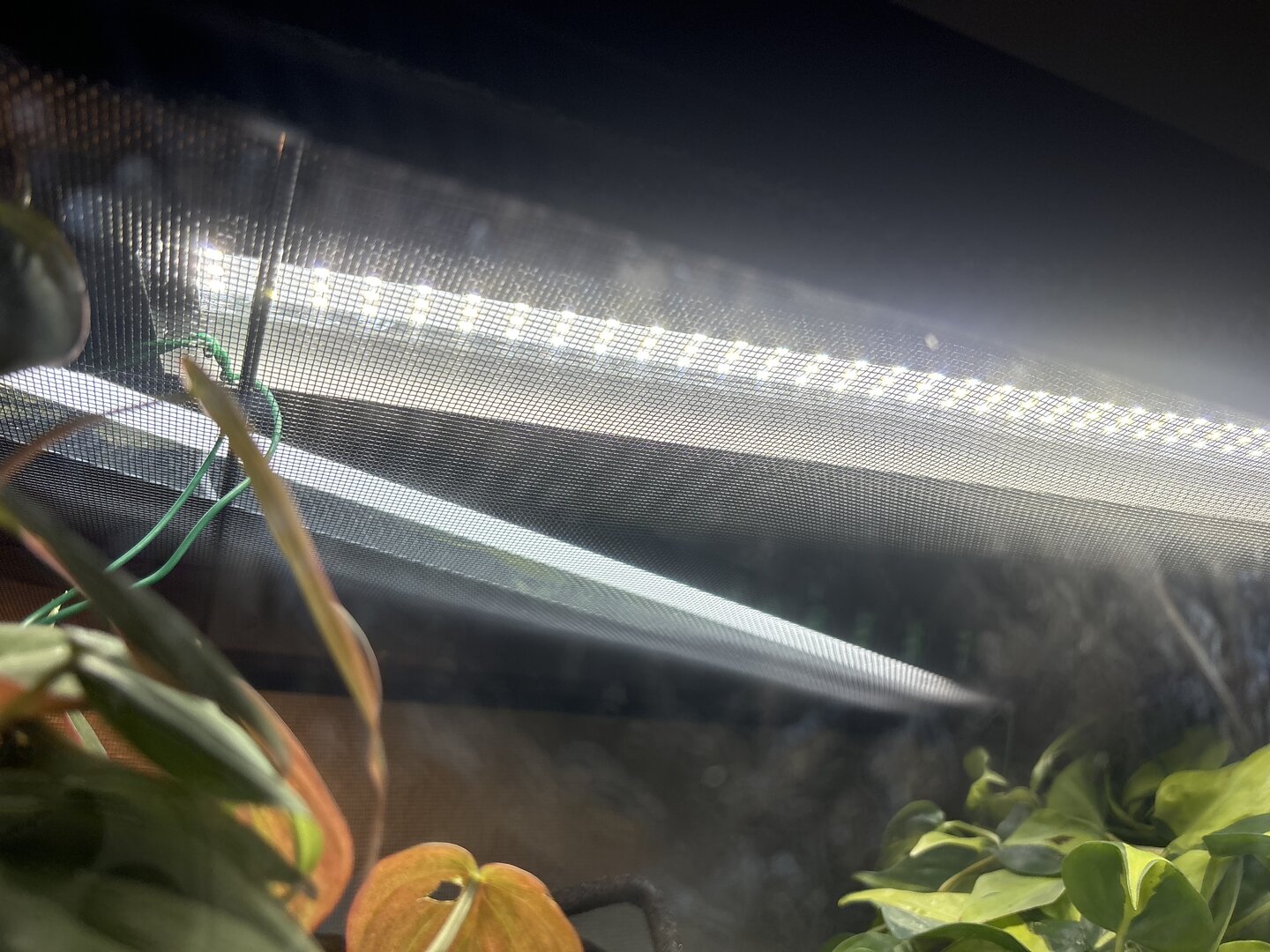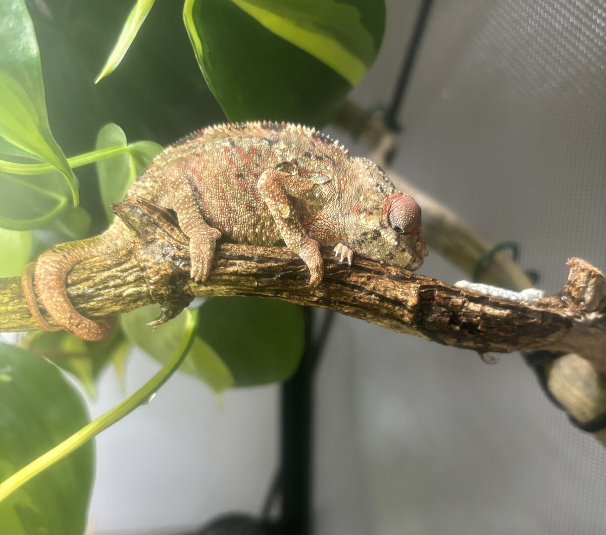 He pooped in front of me (on a plastic dish) so I am going to send it in for a fecal test. I fixed the height of his light to the correct distance and hung another plant for him to hide in.