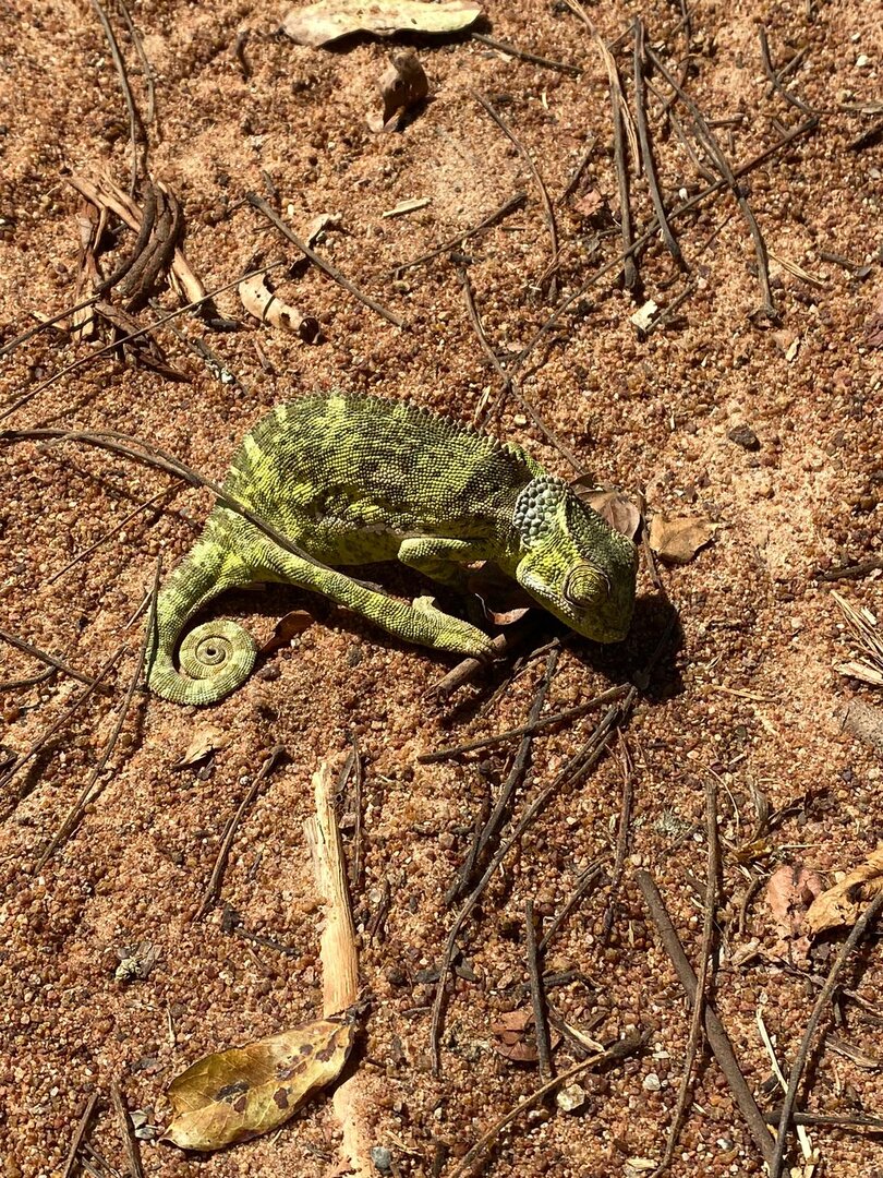Hi! We found a very weak flap necked chameleon in our garden in Tanzania. She's barely walks, doesn't eat or drink, and rests / closes eyes a lot. We force fed her some bugs, but not a lot. She doesn't use her tongue. While climbing she looses grip. Colour adaptation is good. Age unknown. No specialized vets are anywhere near. Does anyone have advise for things we can do ourselves?