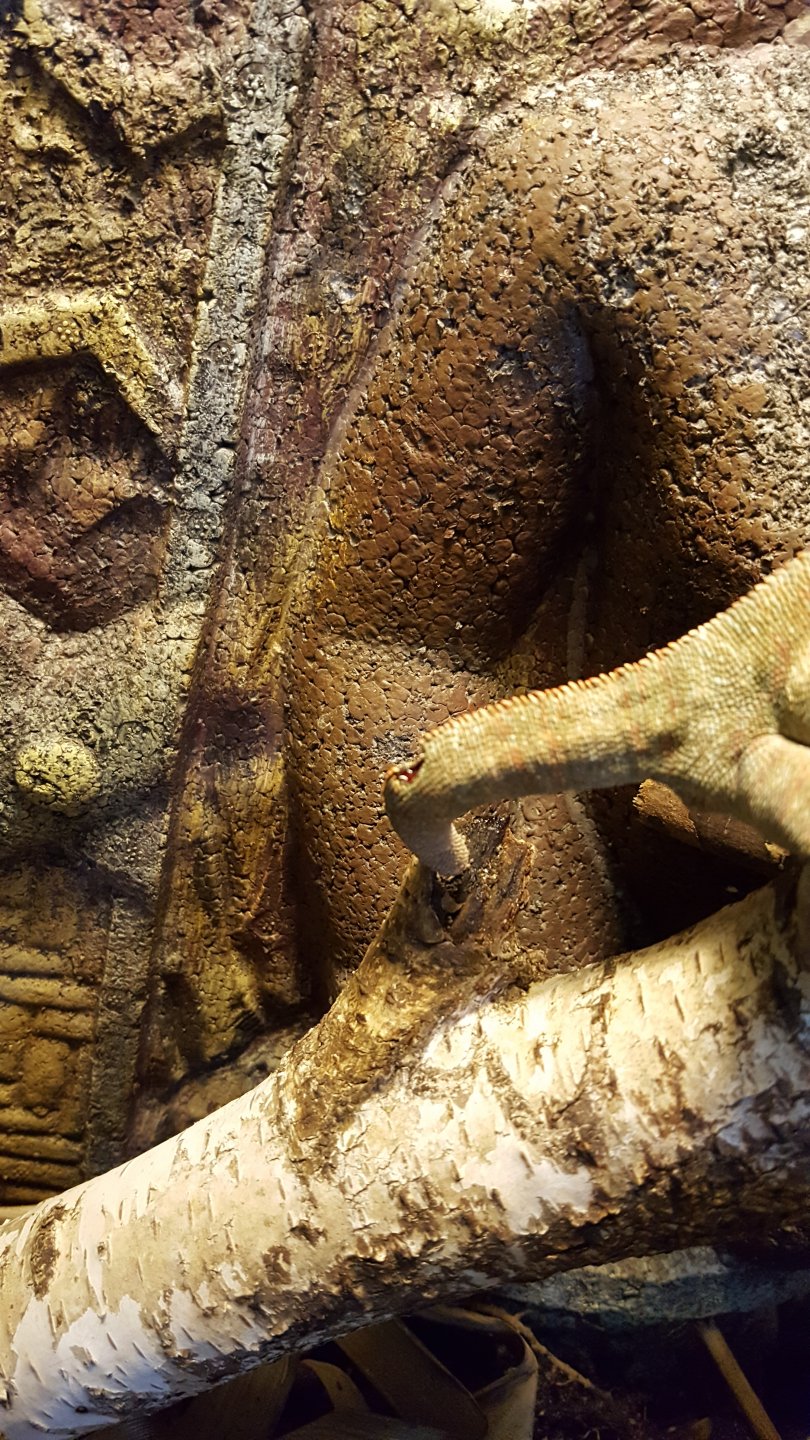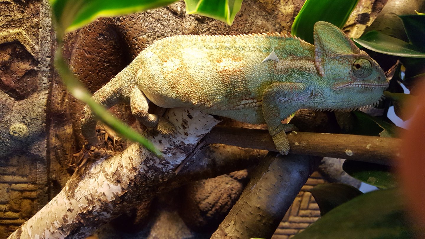 I've had my veiled chameleon, Mario Andretti (because of his racing stripes), for almost a year now. I got him from a rescue and was told he was a boy. Last week he stated digging in his cage and now there is a huge hole. So I thought maybe he was a she but this is the first time he dug a hole. He goes down in it and just sits for an hour or so a day. When I got him half his tail was missing but I don't know why. Today he had what looked like a chunk taken out of his tail. Last night and this morning he was really lethargic and was just sitting on the floor of his cage. Now he's on the back of his cage looking for crickets. Plus he's bright green. I don't know what's going on with him, if anything. He's not usually bright green except in the morning. Here's a pic I just took and you can