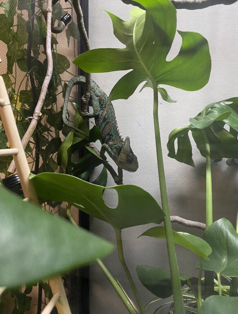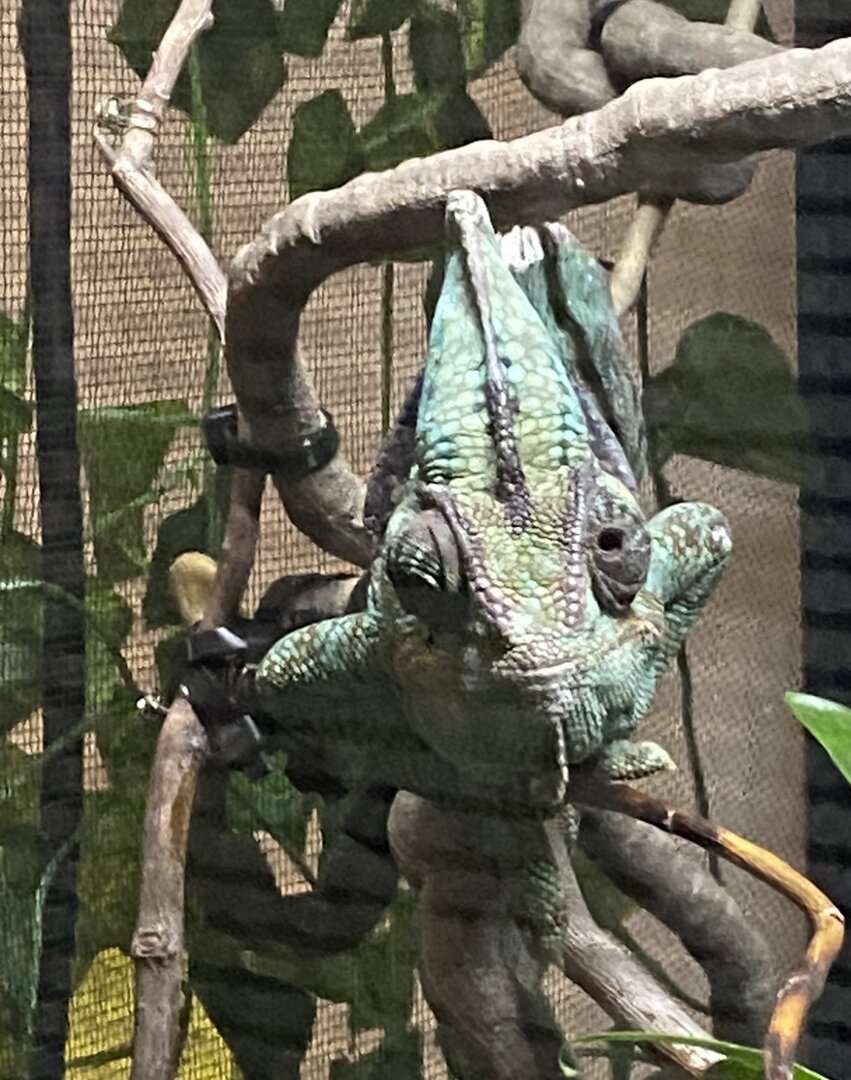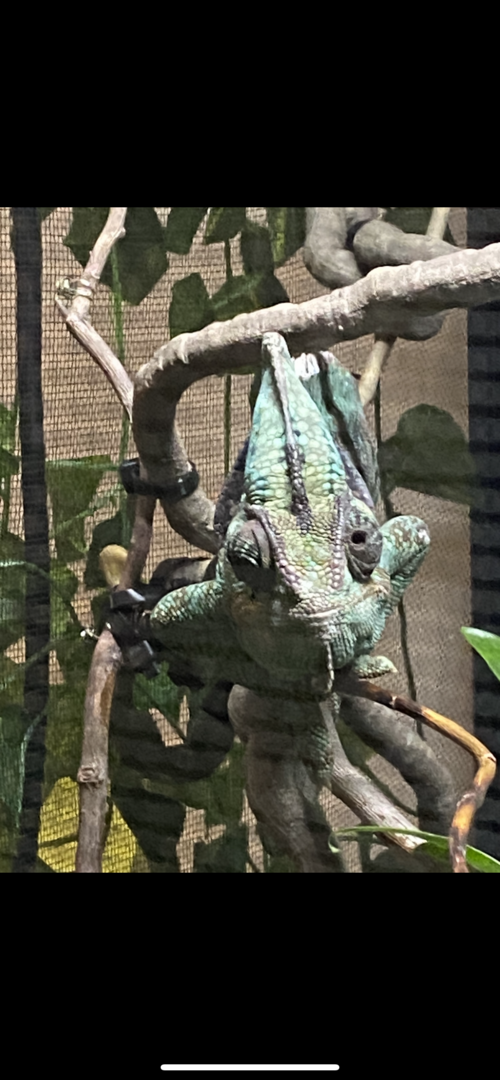 Your Chameleon - I have a male veiled chameleon, he's about 1 year old. I adopted him from a reptile rescue two weeks ago. He's been adjusting really well and he ate on the second day.