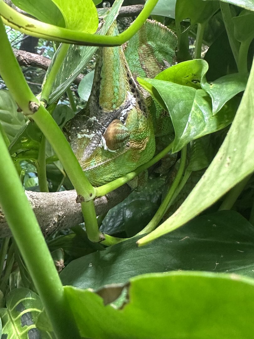 It’s been about another week and I still have not been able to see another poo. I’m going to take the plants out tomorrow to make sure but usually there would be one or two visible somewhere in the enclosure. I’ve fed him hornworms three times in the last week hoping the hydration would help him out. He is not refusing food or acting lethargic, his eyes are both open as well. Also I got to looking at his eyes once he got in his sleeping spot and thought his eye looked kind of odd. What do you guys think? I live so far from any exotic pet vets but it is doable, I’m about to make an appointment for him because I’m worried.