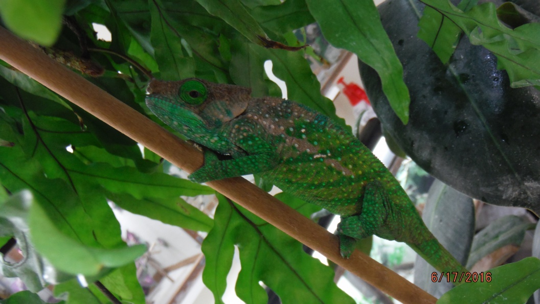 Lots of water, lots of variety of food, and be prepared to treat pretty heavy for parasites. Almost all that have been coming in have been loaded with worms and coccidia and need quite a bit of treatment to get healthy. You will want to have panacur, flagyl, and toltrazuril or albon on hand. They are a pretty lazy cham.. Mine move first thing in the morning and pretty much sit in that spot all day until they find a spot to go to sleep.. They pretty much just sit and wait for food to come to them. I've noticed they seem to favor worms supers and silks in particular.. Not too much interest in crickets and roaches for me.. Imo a 18x18x36 cage is sufficient. They don't utilize too much space. I use a low wattage basking bulb though they rarely bask maybe just a little bit in the morning. Cooler temps.. Water, water, and more water. You will need an efficient drainage system. Low supplementation to too much will cause issues.. All I can think of for now