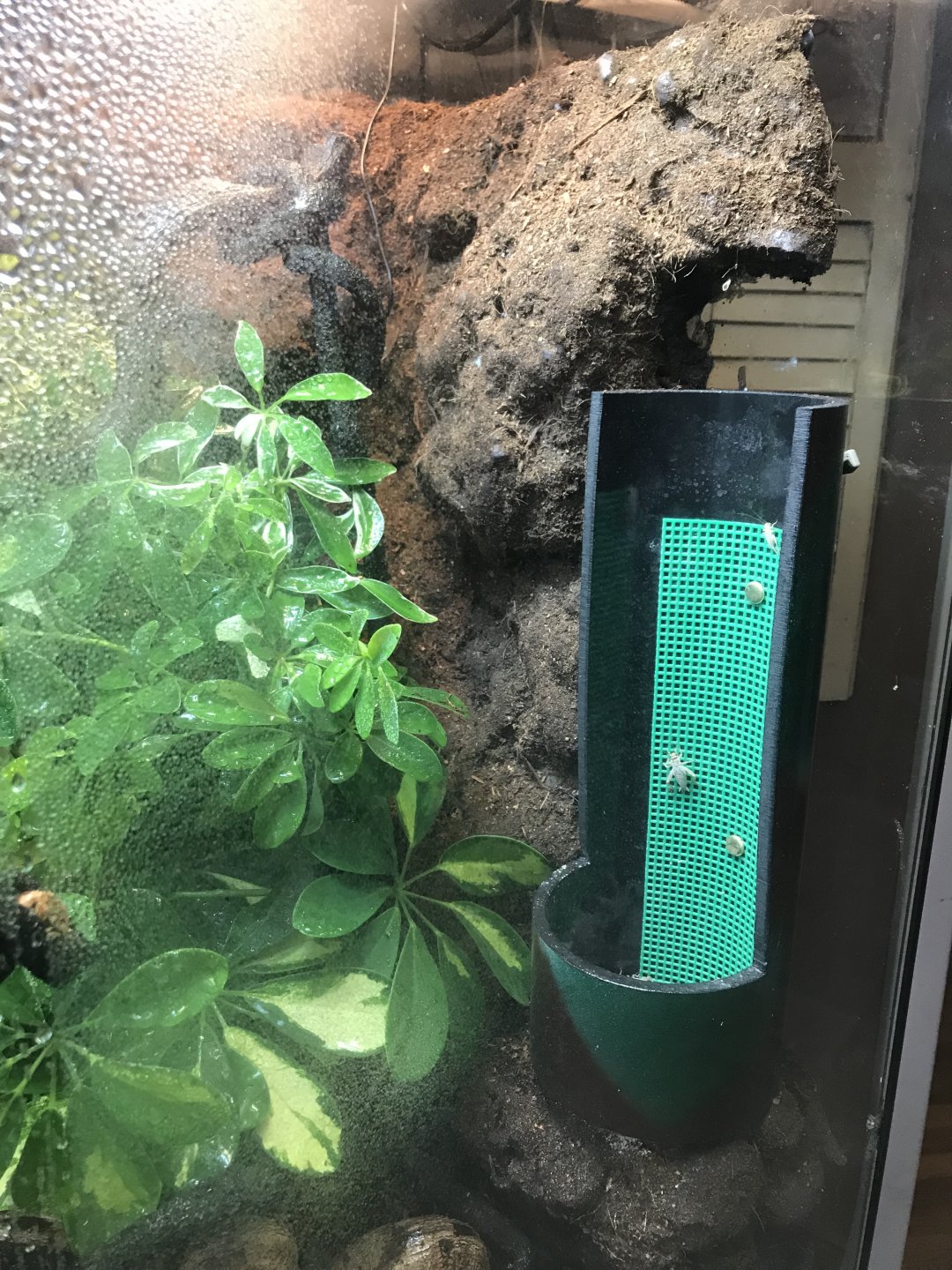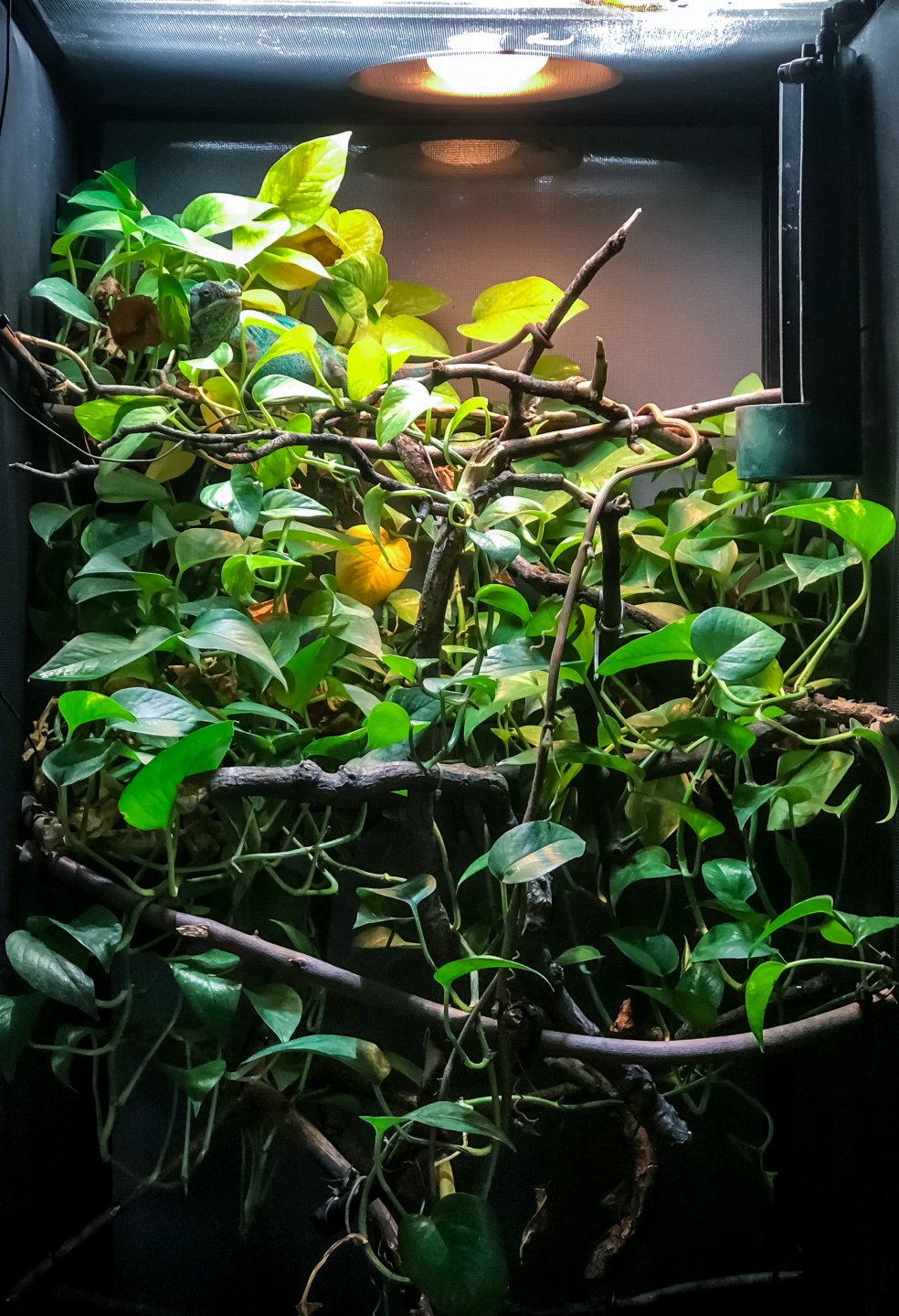 My Dart Frogs would love this!View attachment 194954 View attachment 194955 View attachment 194956 View attachment 194957 View attachment 194959 View attachment 194961 View attachment 194960 View attachment 194958 So Pascal got a upgrade here in the NE of the US I decided to go with a Exo Terra 36x18x36. It has Great Stuff spray foam background with w/ coco fiber. There is a PVC piping installed with slits at the bottom to allow water to be siphoned if it accumulates in the hydroball layer. All the plants are real 5 Umbrella trees, bromeliad and some air plants. For lights I have 2 UVB, 3 Plant and 1 basking in the back right. Misting is Exo Terra Monsoon.