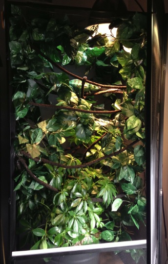 In winter his enclosure will be rolled towards the window without any disturbance or stress to him. In summer, when too hot, we roll him deeper into the house to avoid overheating.