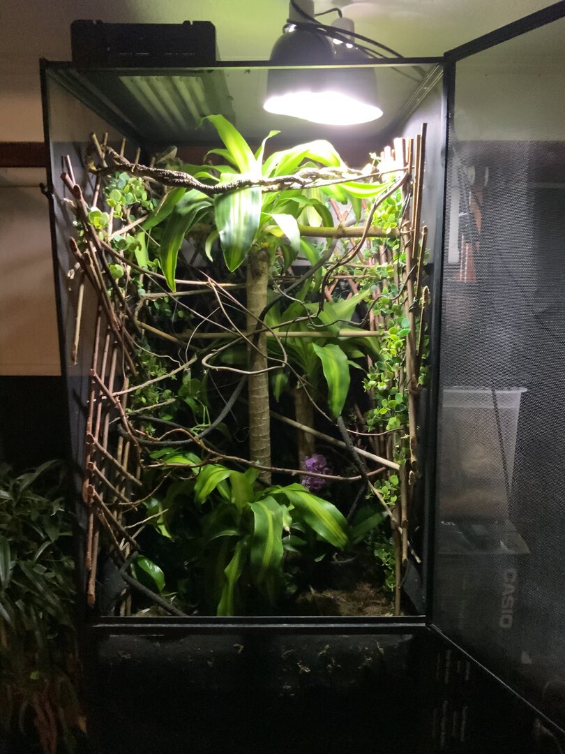 Here are some photos of him in his 2nd setup white flies mercilessly destroy half my hibiscus so I had to move it.I have a problem with ladybugs now probably looking for the whiteflies I got rid lol.