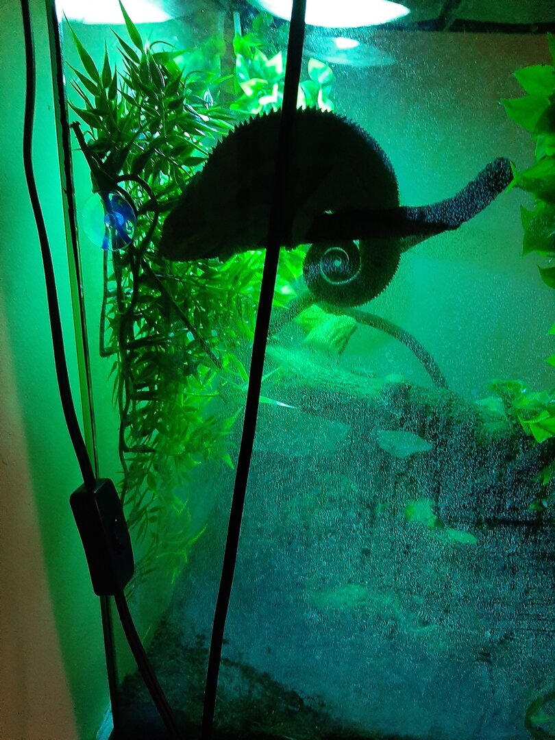 Hello I just got my first chameleon about three days ago. I was first told he was a veiled chameleon and that was what I was going for and did a lot of research for. But when I got him back home it turned out he was a panther (thank you to the one who sold him to me misidentified) so I've been doing a lot of research for his species, but having some troubles. Mostly because when I bought him I also bought the guys set up but it turns out that it was full of mold so it was pretty much thrown out and the back up terrarium is now being used. We could keep his lights but as it's a glass terrarium I'm having some trouble with the basking and uvb temperatures.