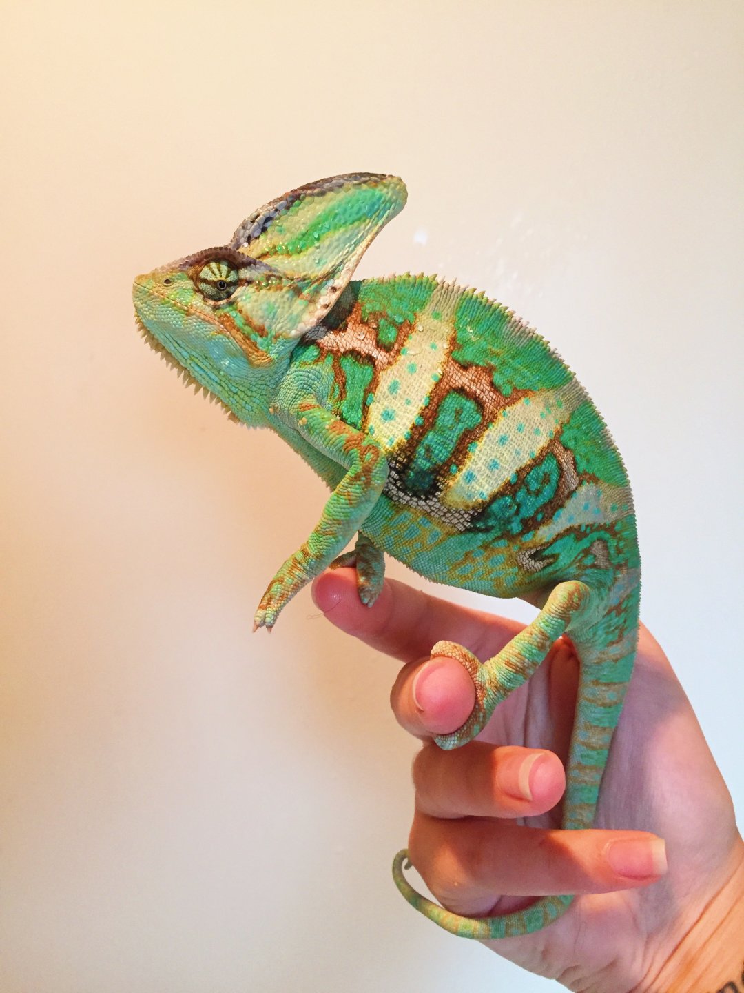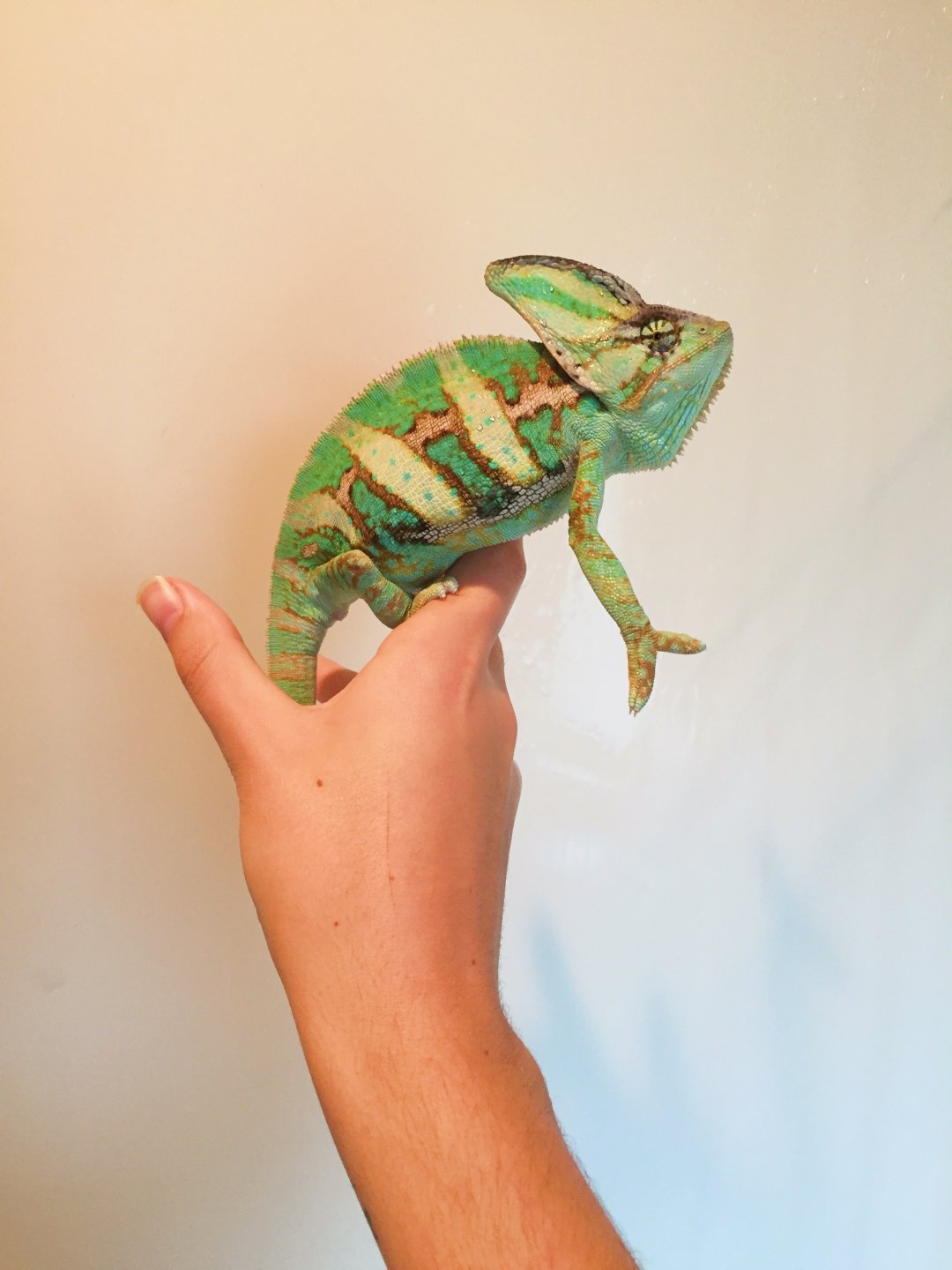 Hey everyone! I have a 7th month old male veiled chameleon named pascal. He is the joy of my life but he is very very picky! I’ve had many different issues with feeding him. He loved crickets and wax worms when he was a baby and I was feeding him 3-5 crickets a day. He then got sick of crickets and would only eat super worms. Now I’ve tried every possible feeder inset out there including fruits and veggies and he’s hardly eating a thing. I also give him all the supplements as needed and his lighting and temperature is all okay (already been checked by a vet). I have attached a few photos of him with his stimulated colours as well as his resting colours. I’m wondering if you all could give me your advice on how he looks weight wise as well as if he looks sick at all. Thank you !!
