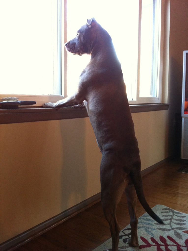She's adorable! I have a rescued brindle boxer girl, and because she had a black face (now it's grey with distinction) people would shy away from her, even though she'd rather lick them to death than anything else. Thank you again for rescuing her - she looks very happy in her home!
