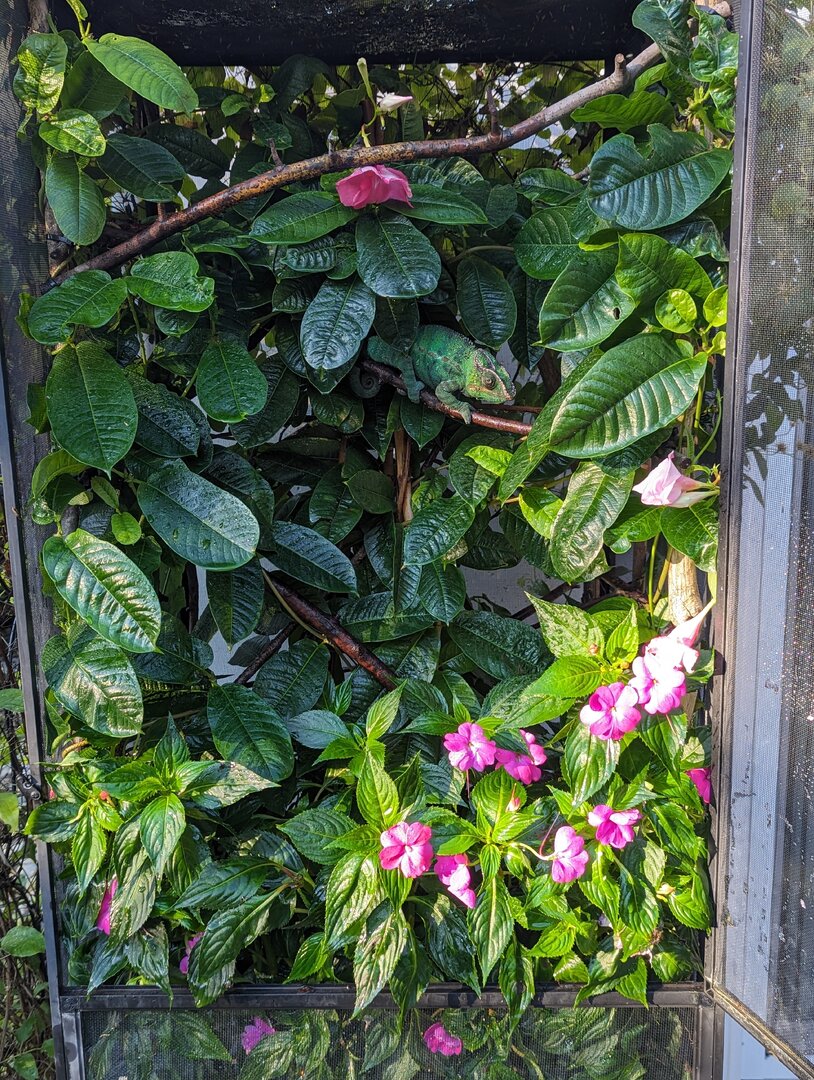 I’ve had them in the upper 90s but the misters are running constantly once the temperature in reach 80 on one side of the habitat . They don’t mind temperatures up into the 90s in fact, sometimes they feed better. Once it starts going over 90 I’ll find them in the lower bushes underneath the misting system. This is just my experience. I try to bring them in if temperatures get over 95. I have the same issue on the lower end of the spectrum. They’ve spent the night outside into the high 40s. Though I didn’t like it, they seem to handle it fine.What are you finding the temperature highs a Parsons is comfortable outdoors? I have always wanted a Parsons but I do worry about them overheating compared to a pardalis.