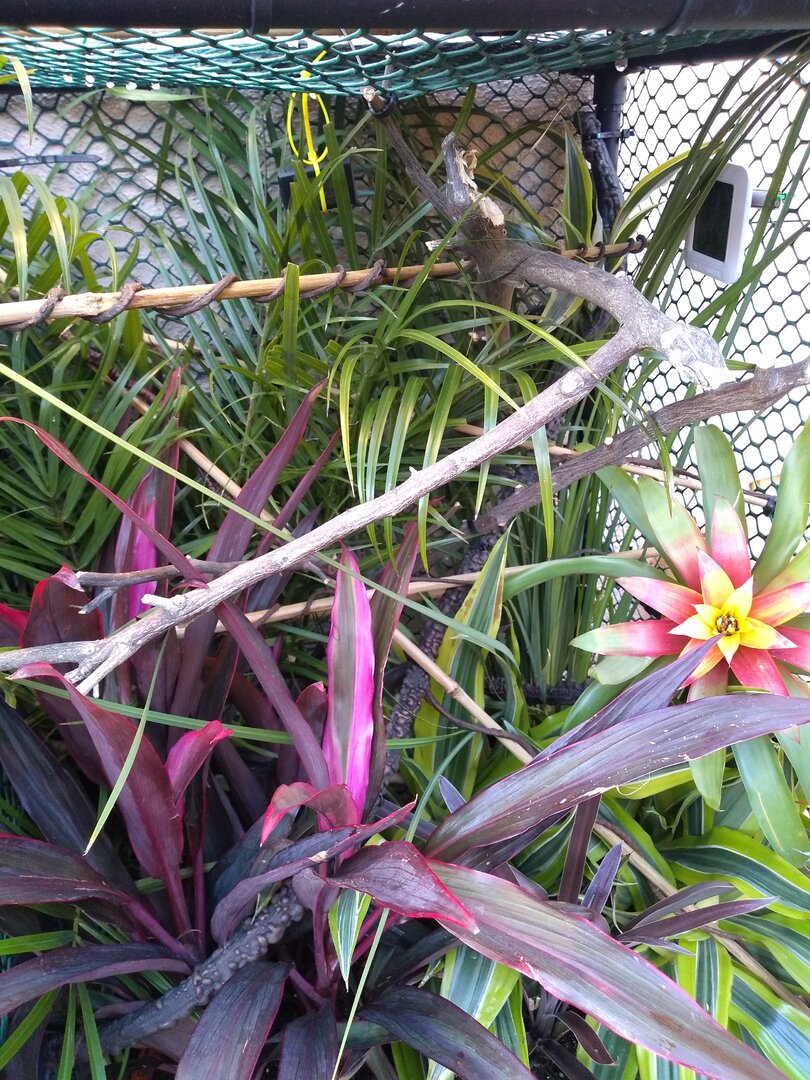 Male will be in the 2x2x4, female will be in the 2x2x3. Enclosures have automated misters that go off 4 times a day for 10 minutes at a time. Might bump up to 15 minutes if they need more drinking time. Being outdoor, I want to offer different areas to thermoregulate, so many branches, bendable vines, and bamboo shoots have been added for walkways. All plants have had the soil washed off root balls to get rid of granular and pellet fertilizers. Plants roots have been dusted with mycorrhizael powder and have been repotted using organic soil. Thinking of adding in worms and isopods to the pots to break down waste matter. I am waiting on thermometer/hygrometer with wired probes to monitor different areas but my stationary thermometer shows temps in the high 80s (fahrenheit) in the basking spot, and mid 60s-75 as you go lower in the enclosure. Tops of the enclosures also have pieces of opaque plastic sheeting ( plastic used for carports) to provide shade if needed.