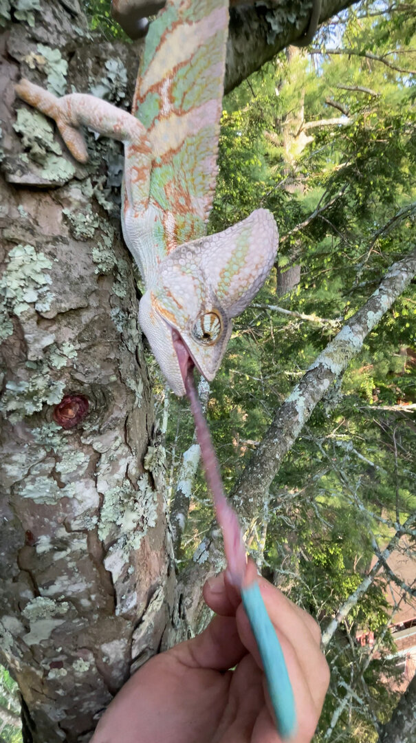He had the best adventure of his life and I had the most stressful and dangerous experience. I loved him so much and couldn’t stand to think he was going to die in my backyard. SO GUYS… don’t trust your chameleon because they are FAST and can climb 120ft high trees in a matter of an hour so please please please keep a close eye on your Cham outside or make an outdoor enclosure.. i definitely learned my lesson and I’m just so happy he’s ok and home safe