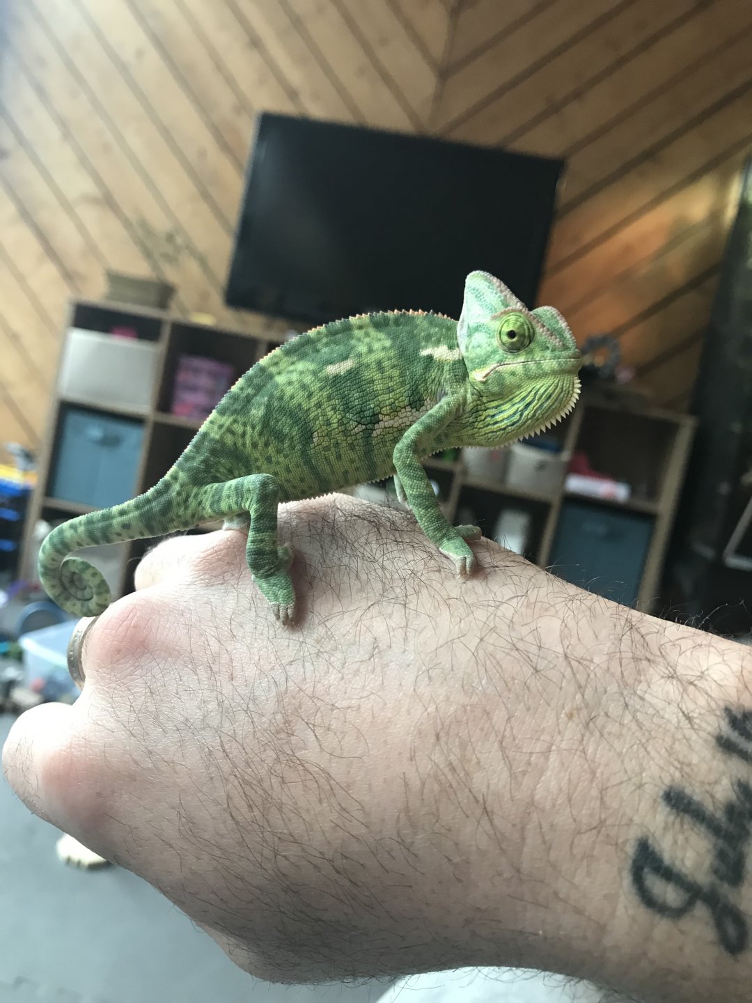 @mBuxx a large adult cricket is probably larger than the space between your cham's eyes. Like with worms, it wouldn't make sense to go by the length of the worm so much as the width. If it was the length we'd all be feeding adult chameleons baby superworms. Definitely don't need to be larger crickets, but if he's eating that many it's usually a sign you can move up a size if you'd like. I like to offer all sorts of sizes to my chams even as adults.