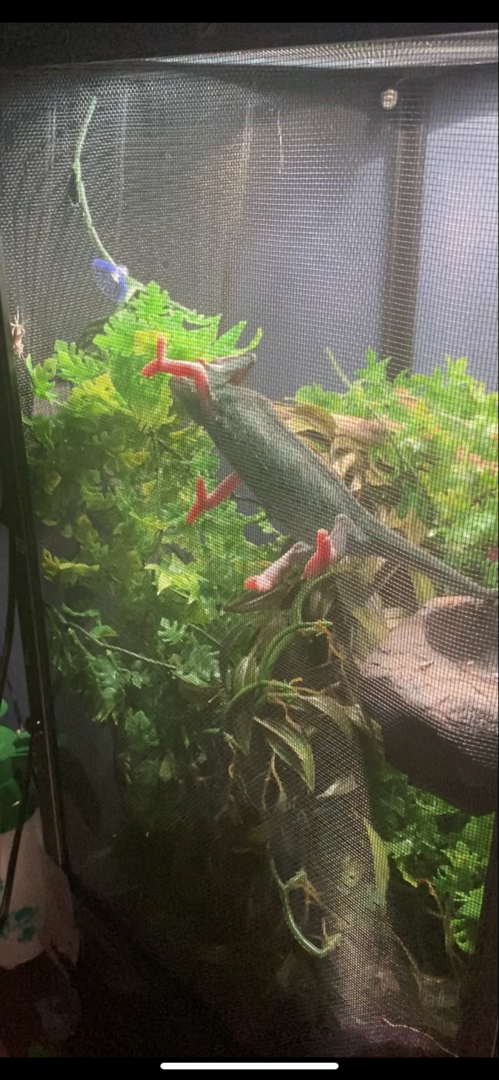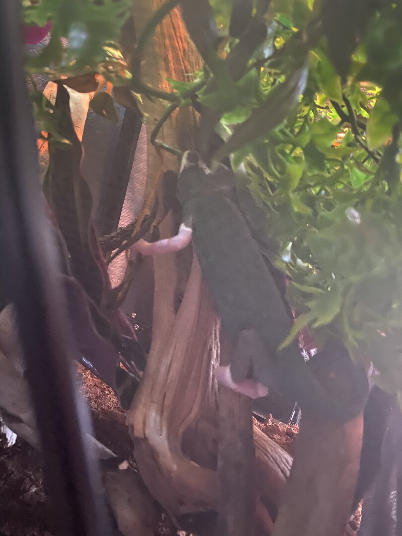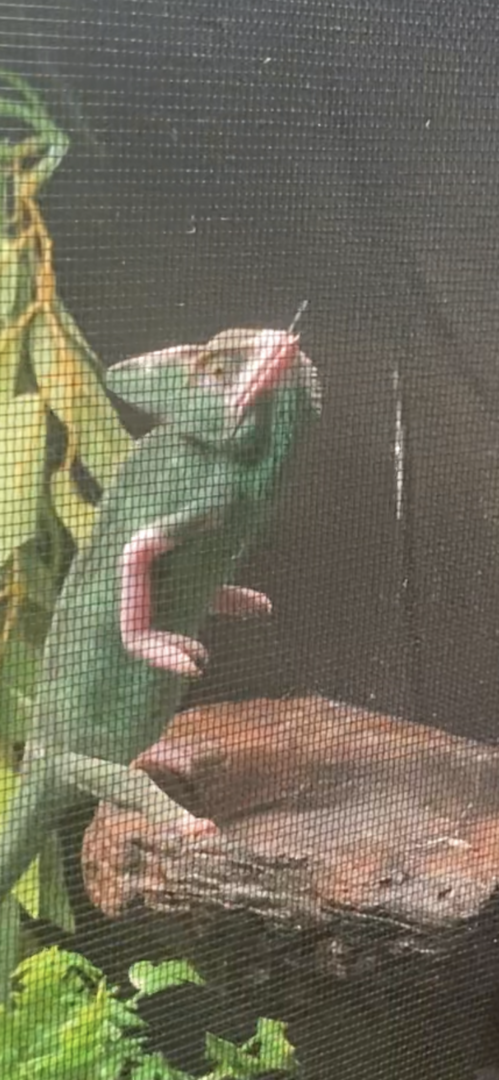 - History - The day I got her she escaped and was in my backyard for like 20-30 minutes on a plant. We had to snatch her back into her cage and she has been stressed since then. When she sleeps she is a bright nice green and sometimes when she’s on her walls she is a bright nice green.