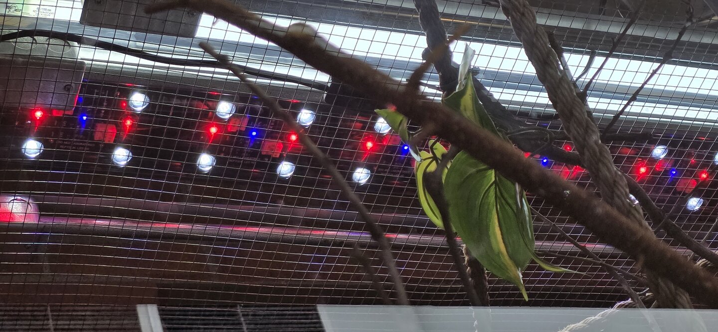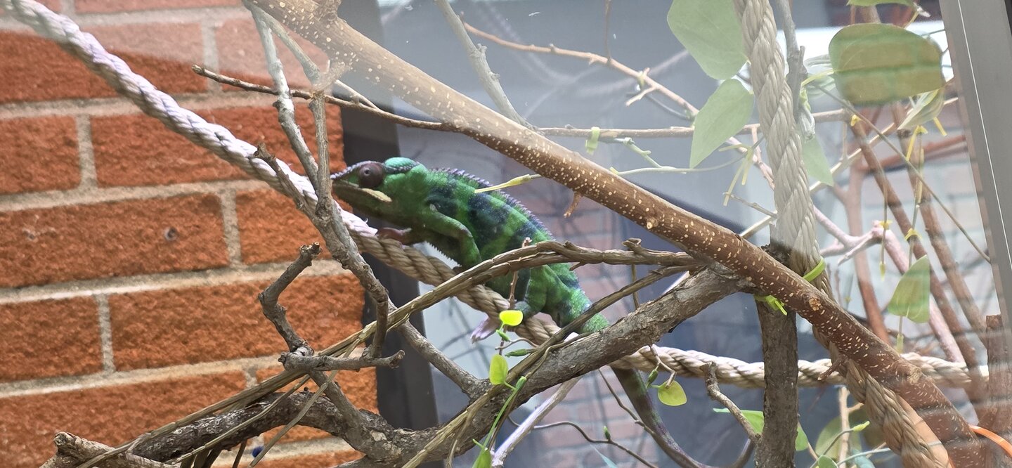 The temps and humidity were quite good, but he was pretty overweight and I'm not sure about the lights. Also unsure of the rope. He's got fake plants but I know Panthers aren't as intent to nibble so that wasn't AS big a worry for me. Unfortunately I didn't take a whole enclosure photo...
