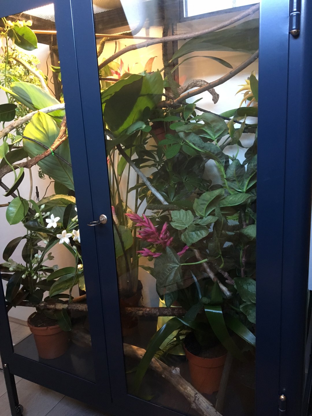 - Plants - All life plants accept for 2 stuck on the sides. Bromelia (2 small ones 1 big one, stephanotis floribunda (Madagascar jasmine) Calathea (big one he sleeps in here), Schefflera (umbrella plant)