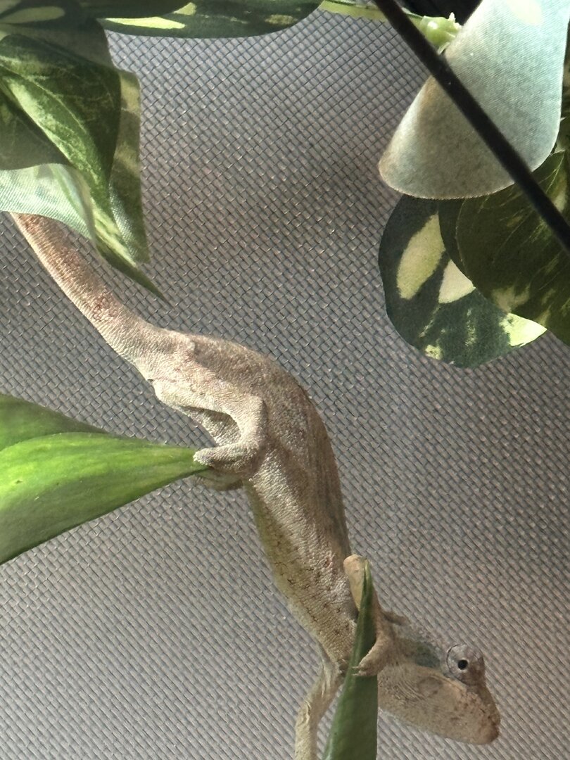 I need help identifying the gender of this beautiful 8mo old panther chameleon. The pet shop says they think it’s a male which they charge way more for. I thought I saw a hemipenes bump but it was difficult to distinguish.