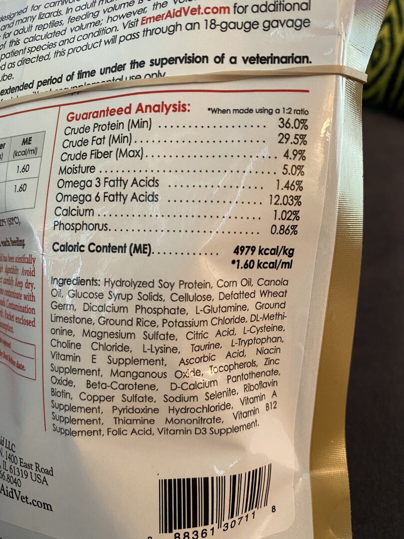 sorry I forgot to attach this image of the food package.Once again....What does the food have in it in the way of calcium, phosphorous, D3 and various forms of vitamin A?