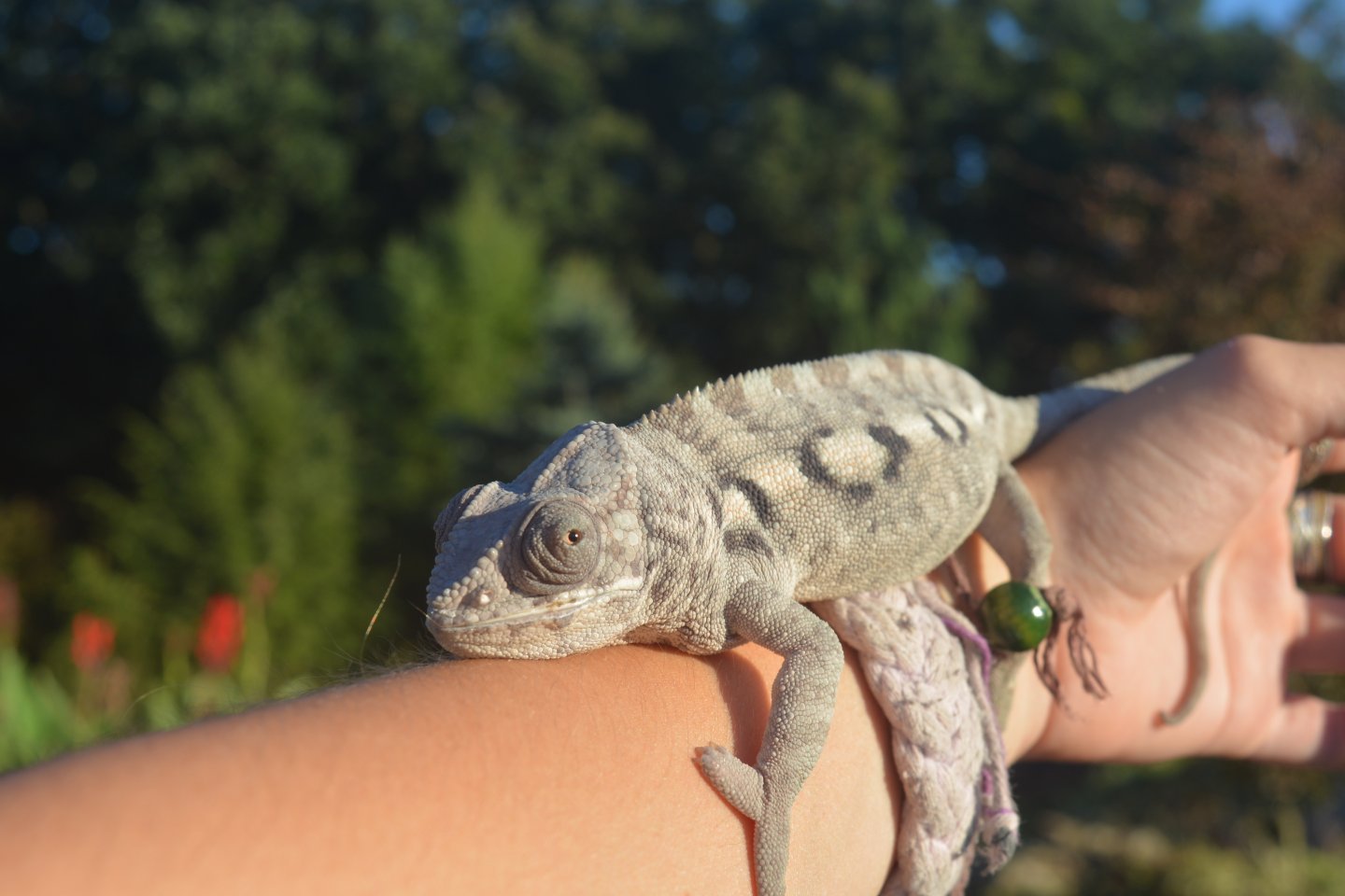 I just ordered her some hornworms a few days ago! And okay good to know right now she is between 30-70% humidity mostly b/w 50-60. I just gave her a nice shower and she drank alot I gave her some liquid calcium as well. I just gave her a cricket batch with a multi vitiman dusting 2 days ago its called cricket dust Herbcare makes it. I actually haven't given her the d3 dust I have for a while now because I used to use it all the time (before I knew what I was doing) What is a humidity that is to high? I don't want her to get worseOh also if you have the ability to order some silkworms or hornworms to feed her during the process it would help tremendously as well. It will keep her much more hydrated, which will be good for her pneumonia, considering you wouldn't need mist as much in order to do it and the humidity wouldn't be nearly as increased. The problem with chameleons having pneumonia is they need to be heavily misted to drink, panthers don't actually need that high of humidity to be healthy and happy. Which if the humidity is too high regularly it will cause the fungal infection in her lungs to get much worse. So with hornworms or silkworms as a regular part of her diet it would easier to keep her drier safely which would cause her pneumonia to get better faster.