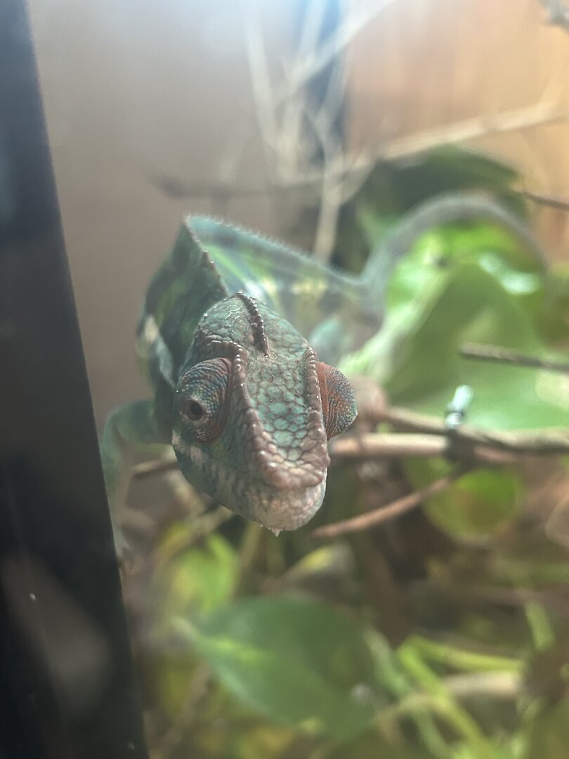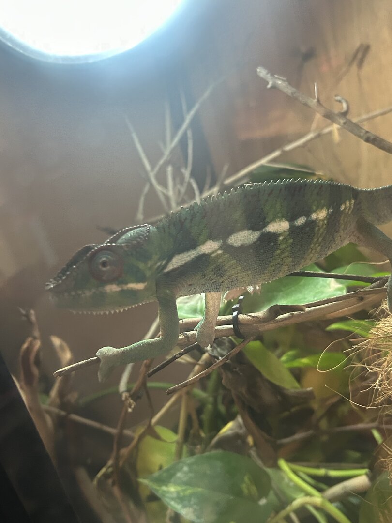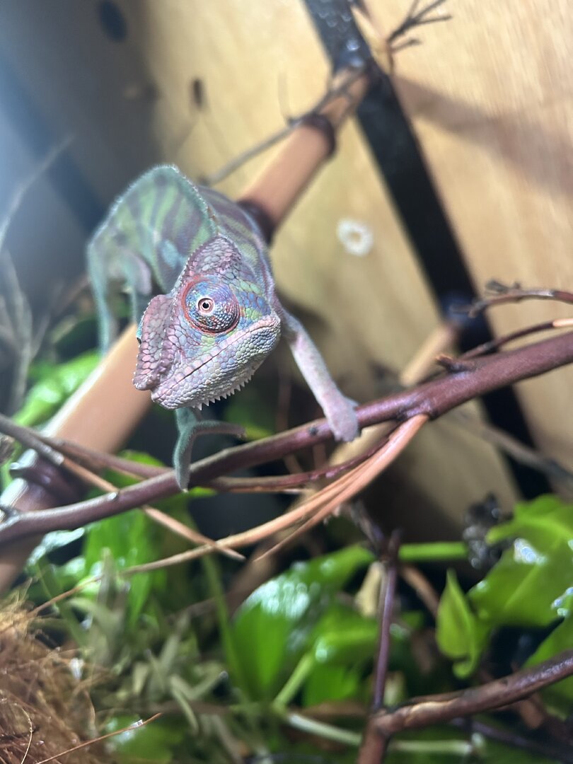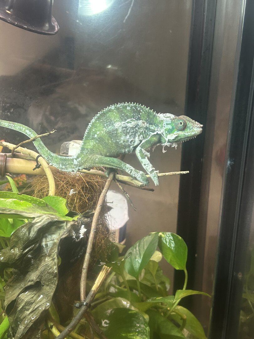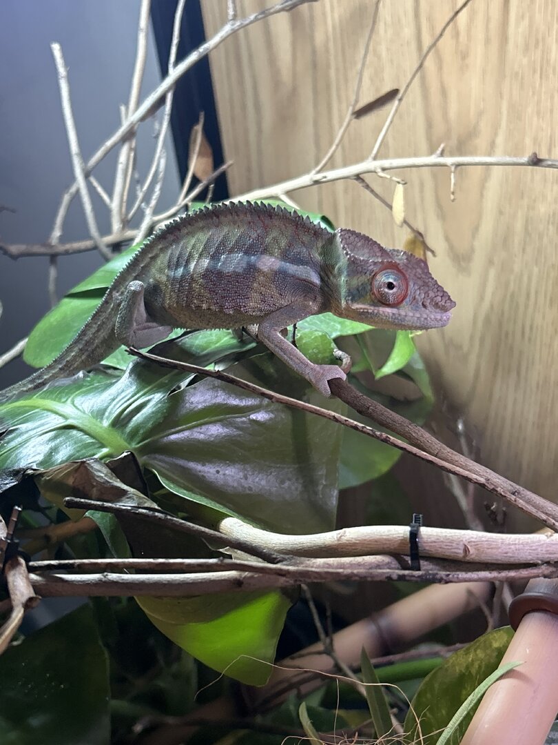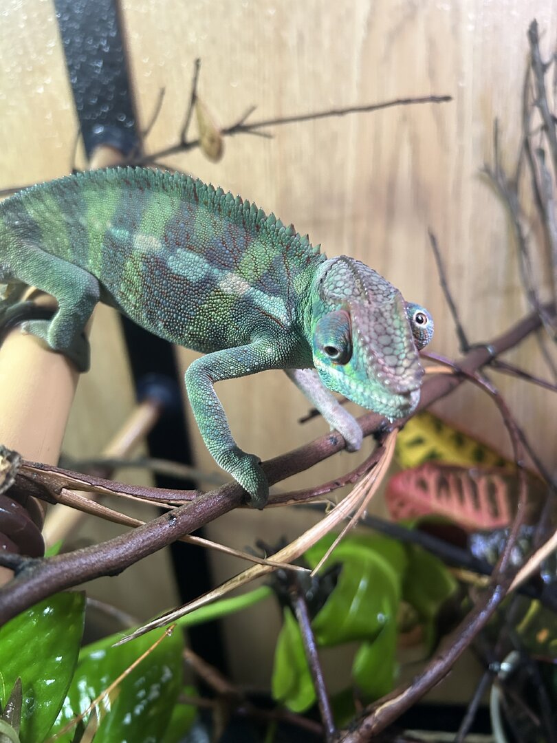 As promised here is a week’s progression: Pascal has been eating way more everyday. He’s been on a dubia roach, superworm, and hornworm diet eating about 4-8 everyday as he pleases. He couldn’t eat twelve, but it’s a significant increase to what he’s used to. I ordered some waxworms and silkworms as well, should be here in a couple days.He is super active so I’m ruling the parasites out as well. I’m going ASAP to buy some in the morning because he already ate 4 significantly large dubias today. Seeing those Chameleons really puts into perspective how much he should be eating. His more vivid colors only started coming out maybe 1 or 2 months ago.