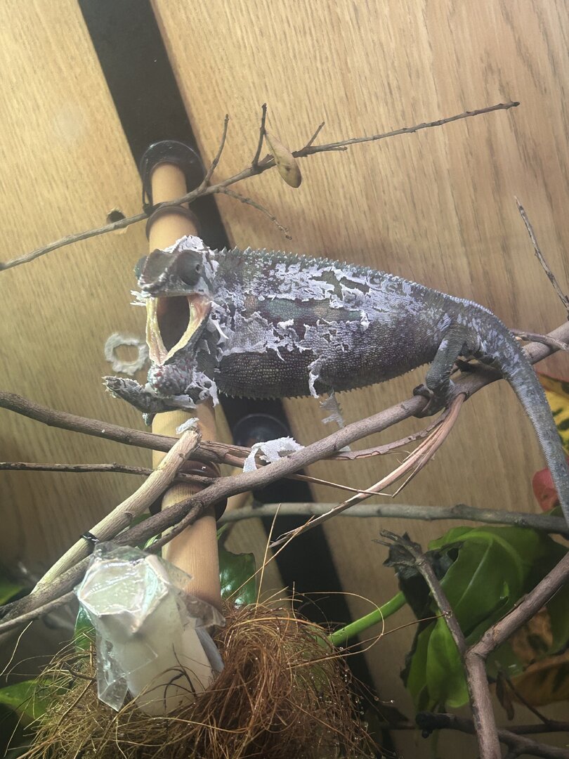 I apologize I just now saw this, he has been eating less and mainly eating dubias and he’s gone a few days without the waxworms, hornworms, or silkworms because they either died or got ate. I should be getting more in this week.Wonderful lets see how he does over the next week and next week I would like a few up close pics of him face and body. Full body shed indicates growth so that is good as well. The curb down is as expected and I would like to see how he does with that the next week. Please note how many he is eating each day for me.He looks so much better.