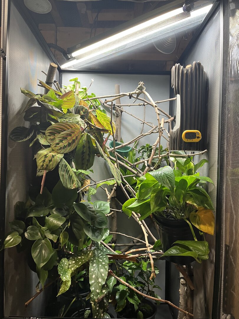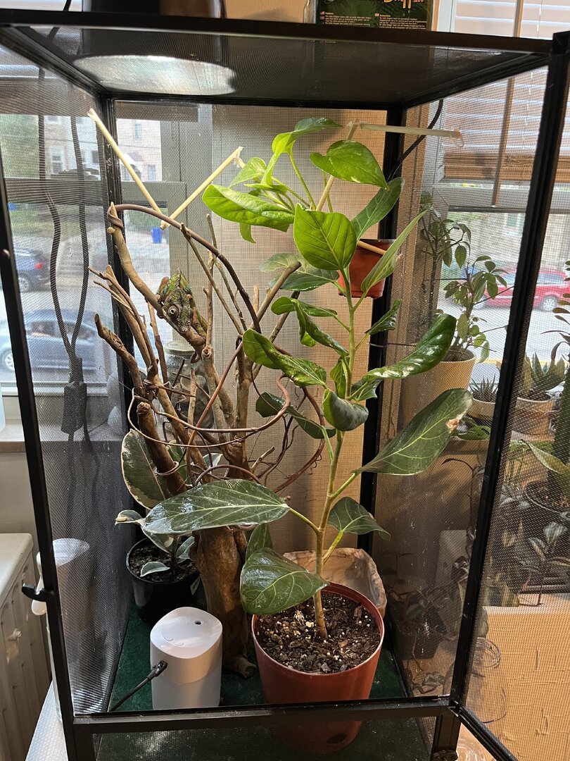 Wow this was incredibly helpful and I will do all the adjustments and don’t worry I didn’t forget the picture I should have a picture in about an hour!! I got him from a breeder that goes to Pittsburgh’s monthly reptile show. He was odd. When I was asking questions for example I asked if he handled my guy before and his reply was “I have 800 chameleons no I don’t know if I handled that one” “I also leave them in my trunk sometimes between the shows” keep in mind the shows are MONTHLY. Can’t say he was the best to buy from.